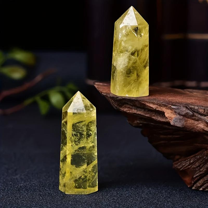 Add a touch of positive energy to your space with this yellow quartz crystal obelisk. Perfect for meditation and spiritual growth.