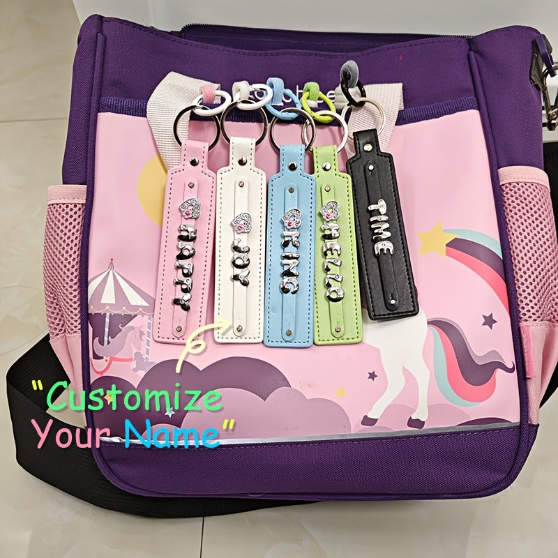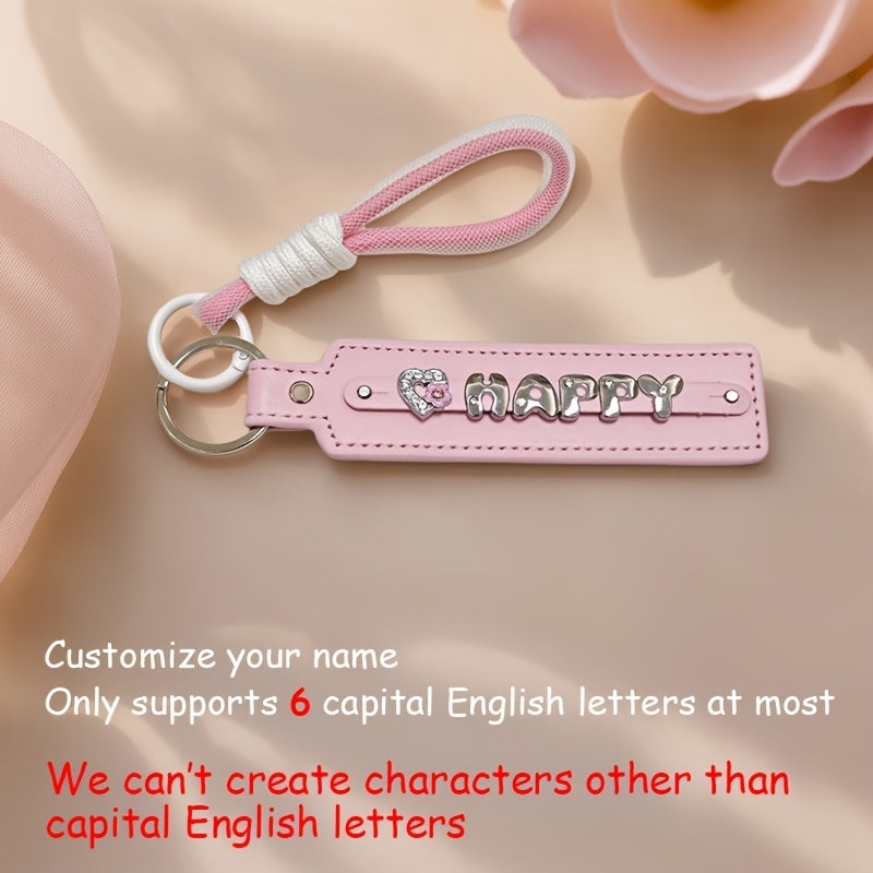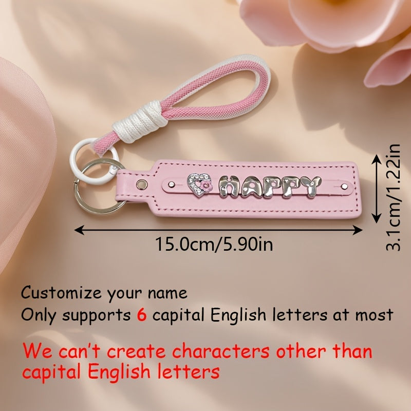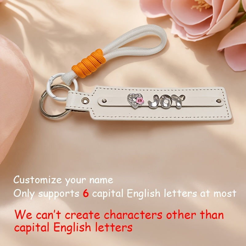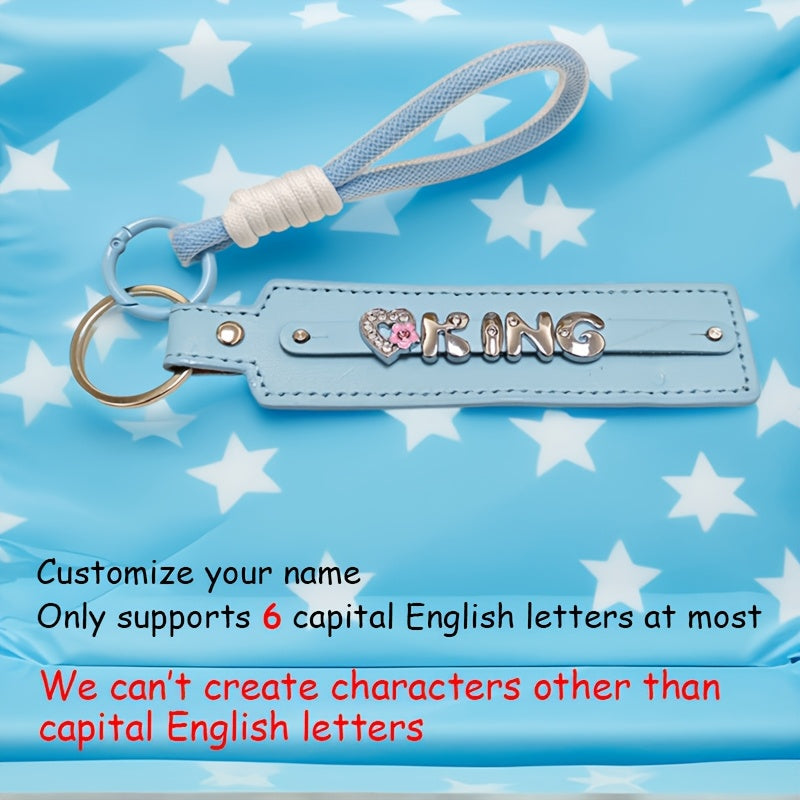 Elegant keychain with smooth lettering and faux diamond accents. Detachable design fits keychains, backpacks, and phone straps.