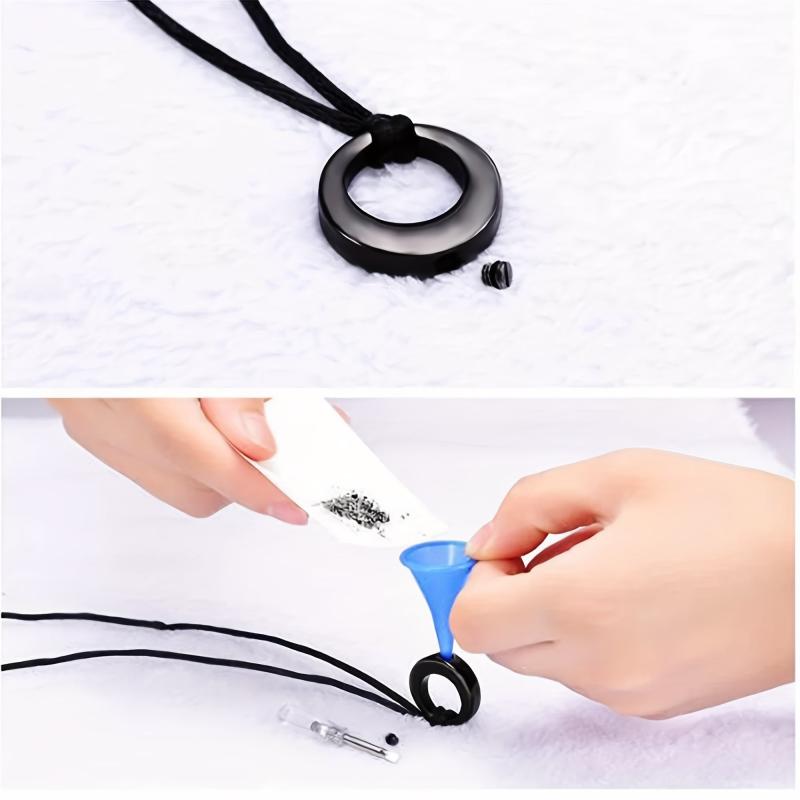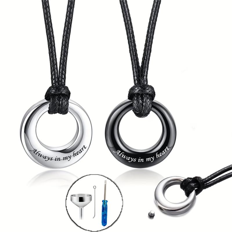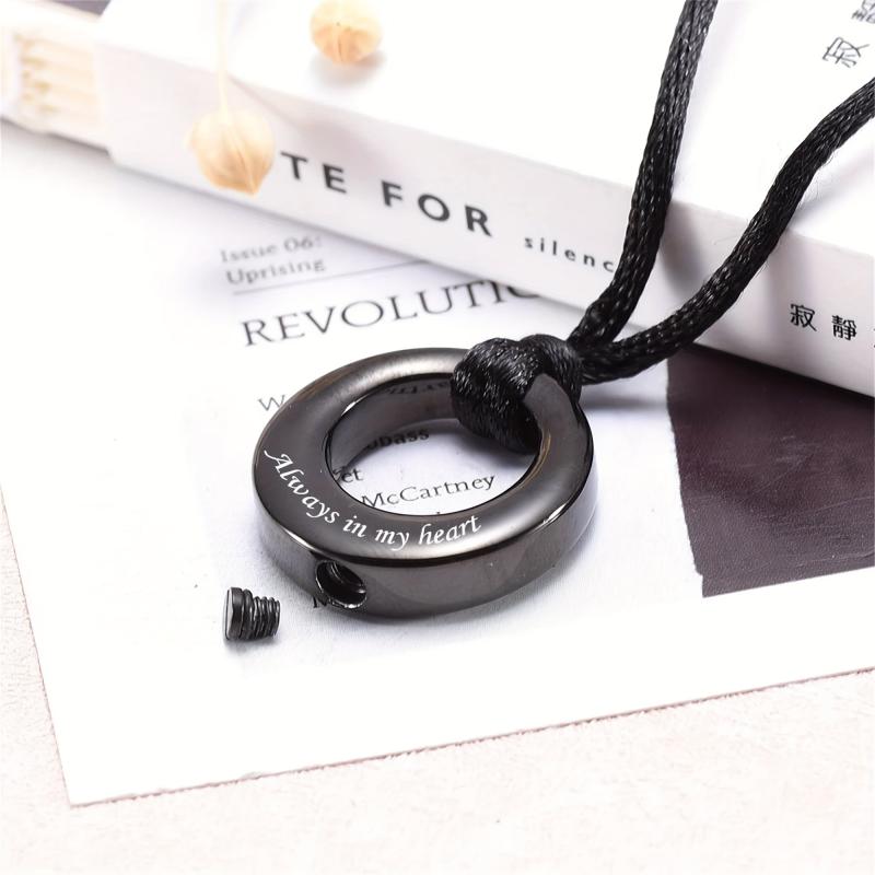 Unique custom urn necklaces featuring carvings for human or pet ashes. These eternal circles of life cremation jewelry pieces are perfect ring pendant necklaces for men.