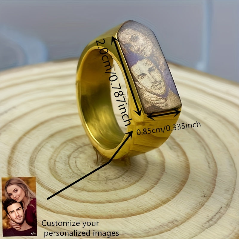 This ring is a perfect gift for an engagement party or wedding. It can be personalized with your own picture, making it a special and unique piece of jewelry.