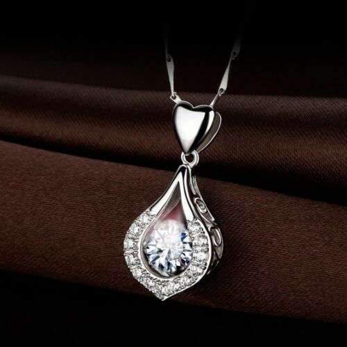 Women's Silver Plated Water Drop Crystal Stone Pendant Necklace