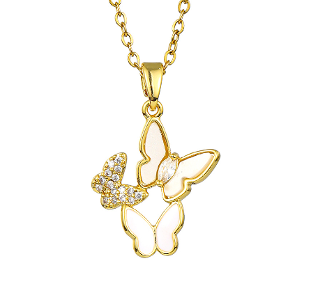 Women's Gold Plated Triple Butterfly pendant Necklace with zircon