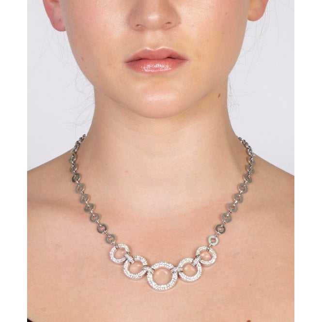 Women's Rhodium Plated Round Hooped Ring Crystal Necklace