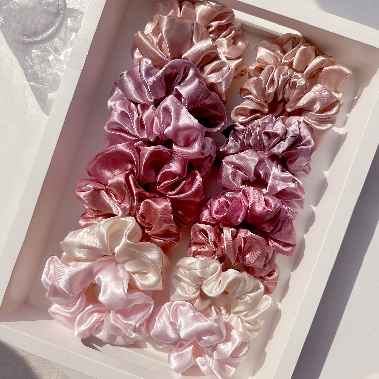 Upgrade your hair game with these soft satin scrunchies that offer high elasticity. Perfect for casual or formal occasions, the set includes pink, purple, and beige scrunchies to match any outfit.