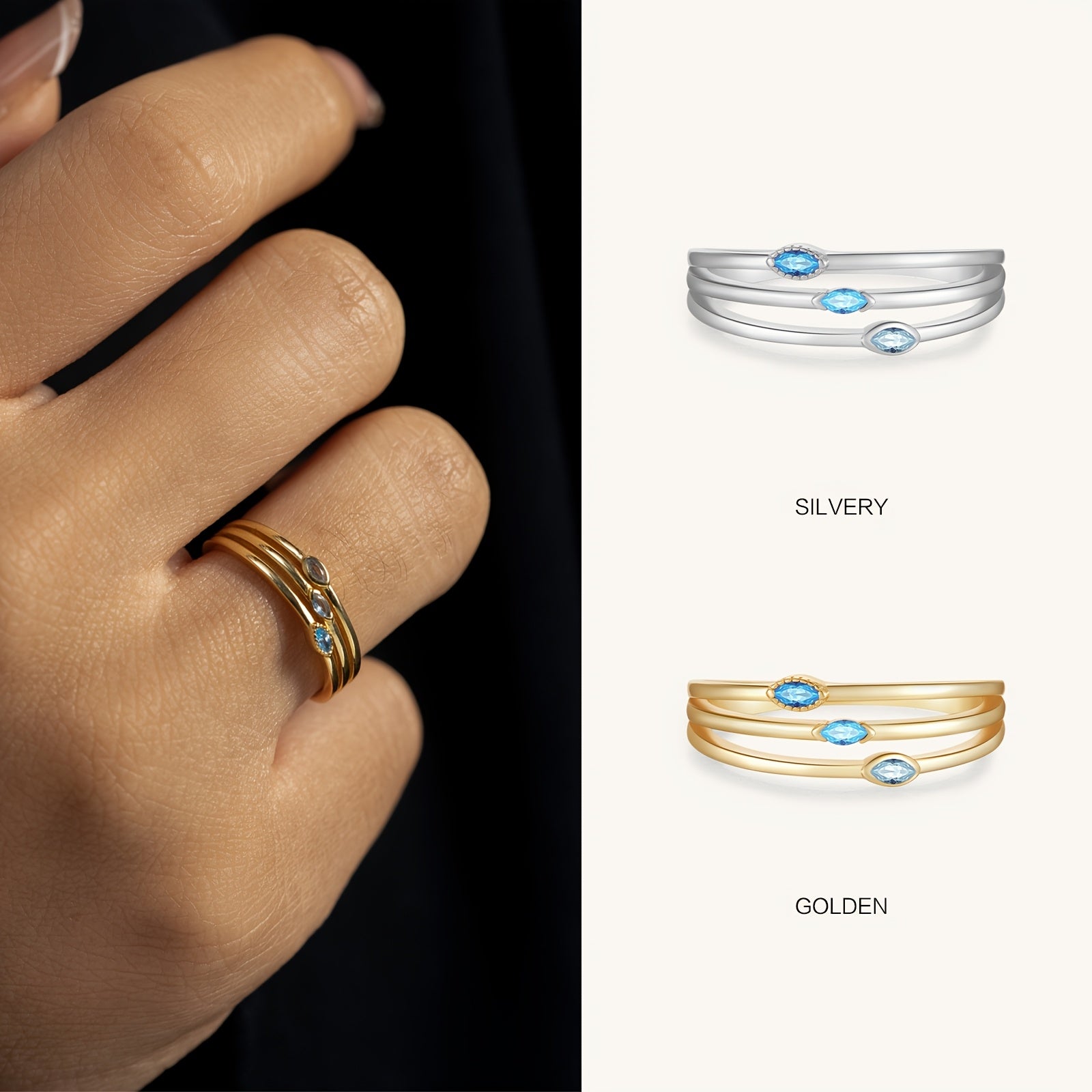 Make a statement with this hypoallergenic three-layer ring set featuring synthetic zirconia. Perfect gift for birthdays or Valentine's Day.