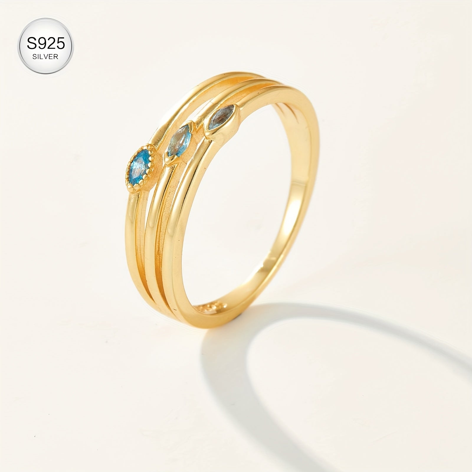 18k Gold Plated S925 Silver Ring Set with Synthetic Zirconia, Hollow Out Jewelry
