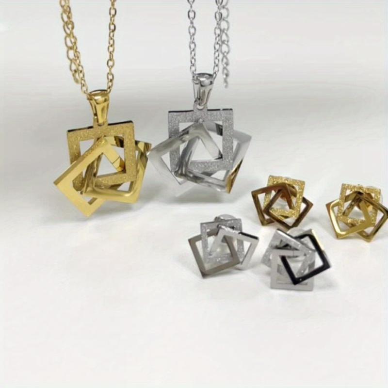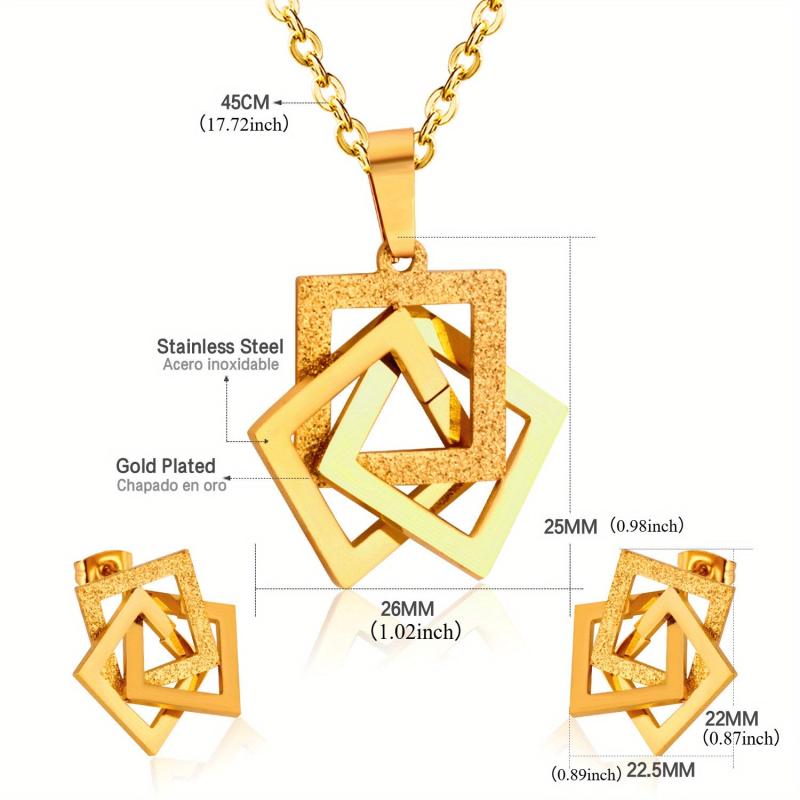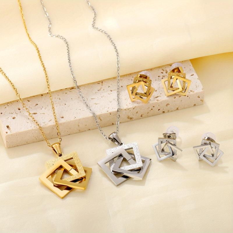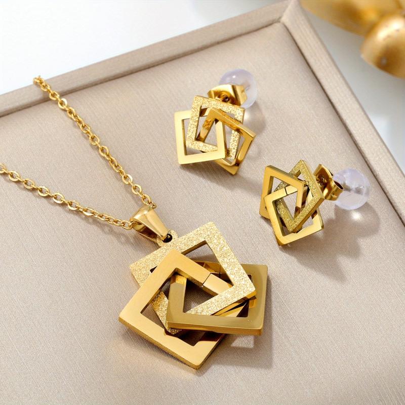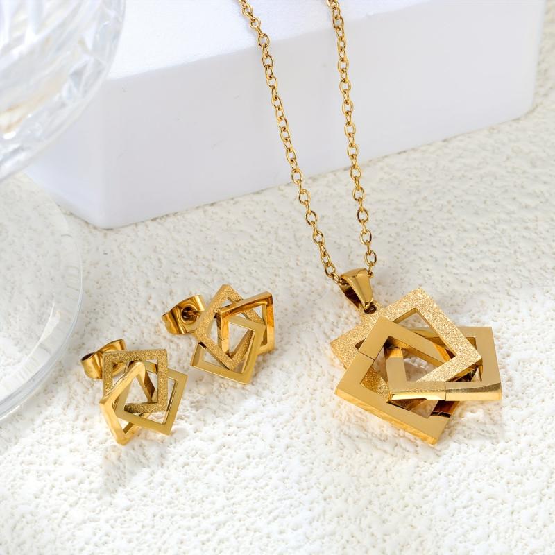 18k Gold Plated Square Stainless Steel Necklace & Earrings Set
