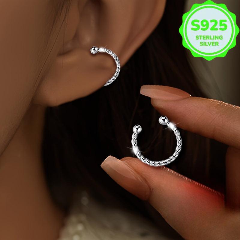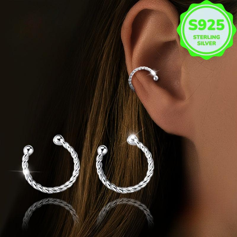 2 Women'S Twisted Ear Cuffs Silvery Style No Piercing Required