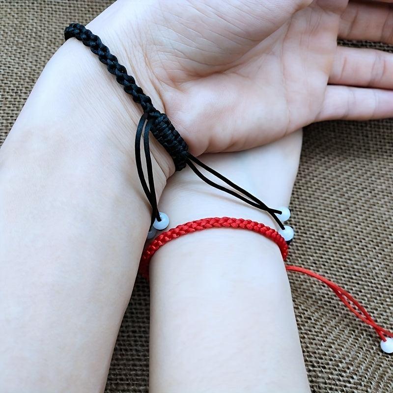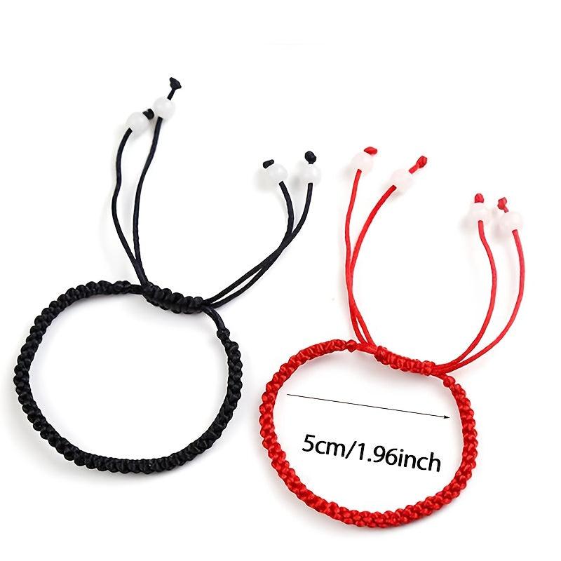 2pcs Red Rope Bracelets for Couples Adjustable Beaded Perfect Gift