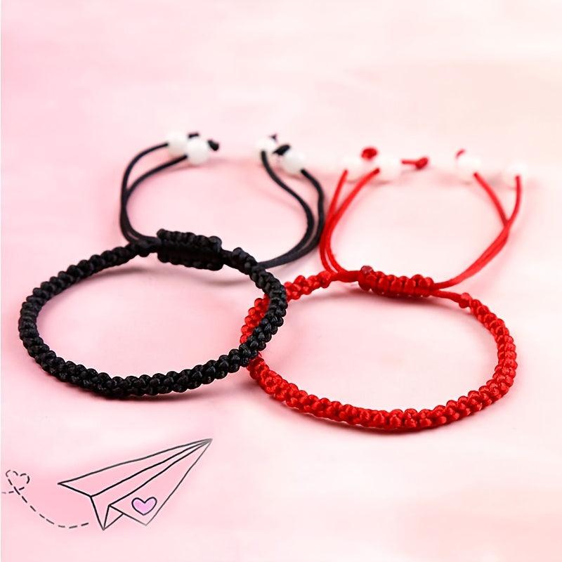 These red braided rope bracelets are ideal for couples, featuring an adjustable design. They make a perfect gift for him or her, suitable for birthday celebrations or party wear.