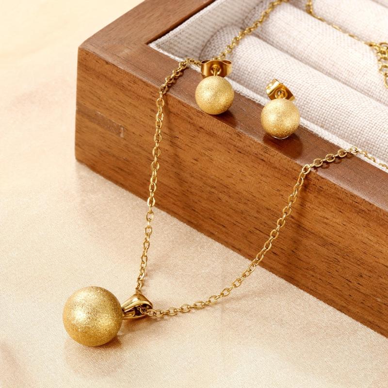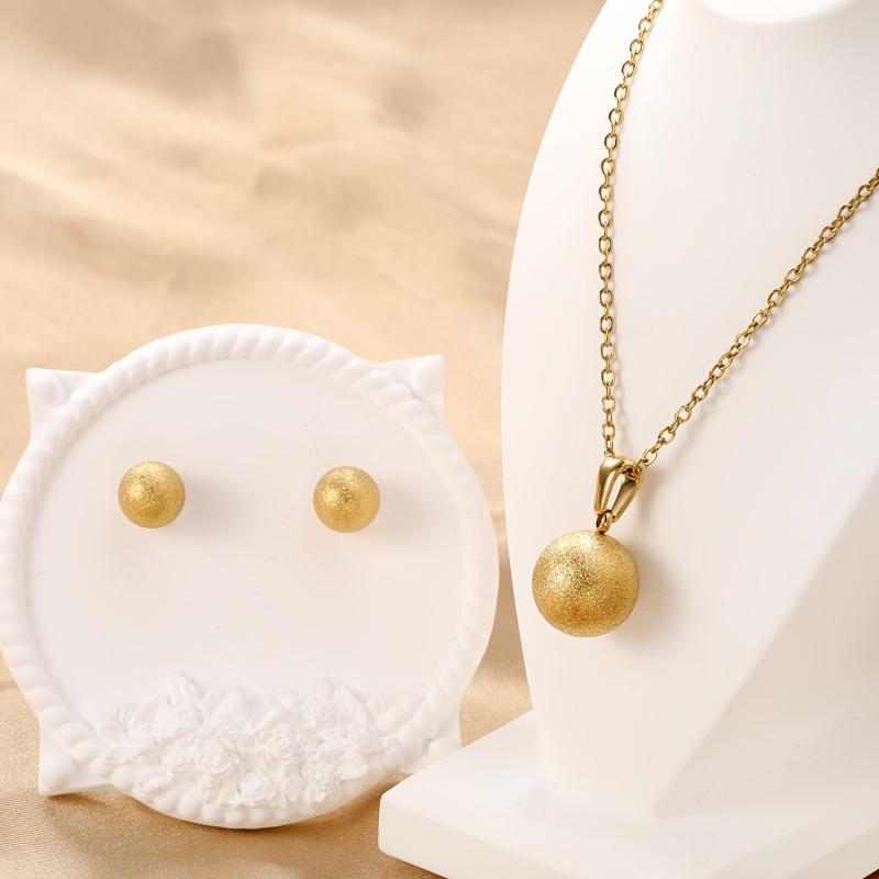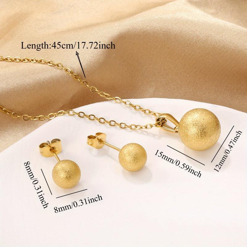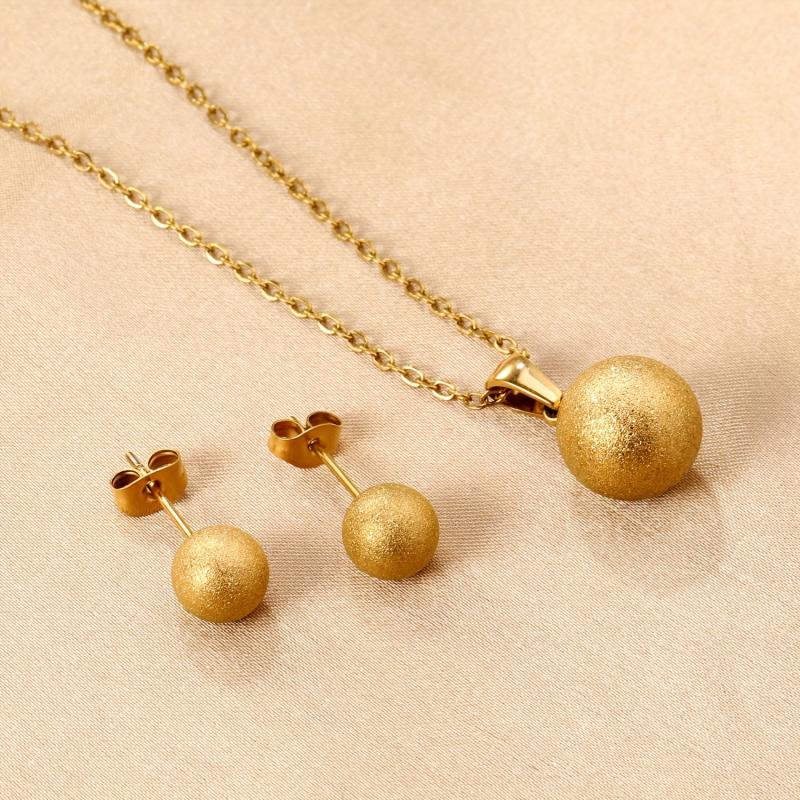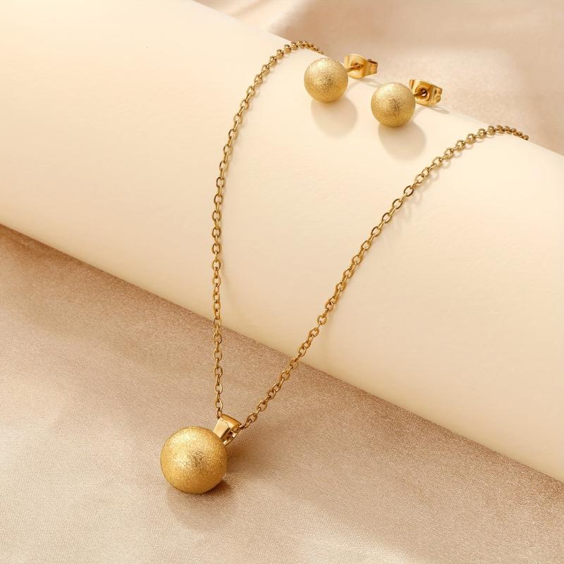 3pcs Golden Frosted Ball Jewelry Set for Women