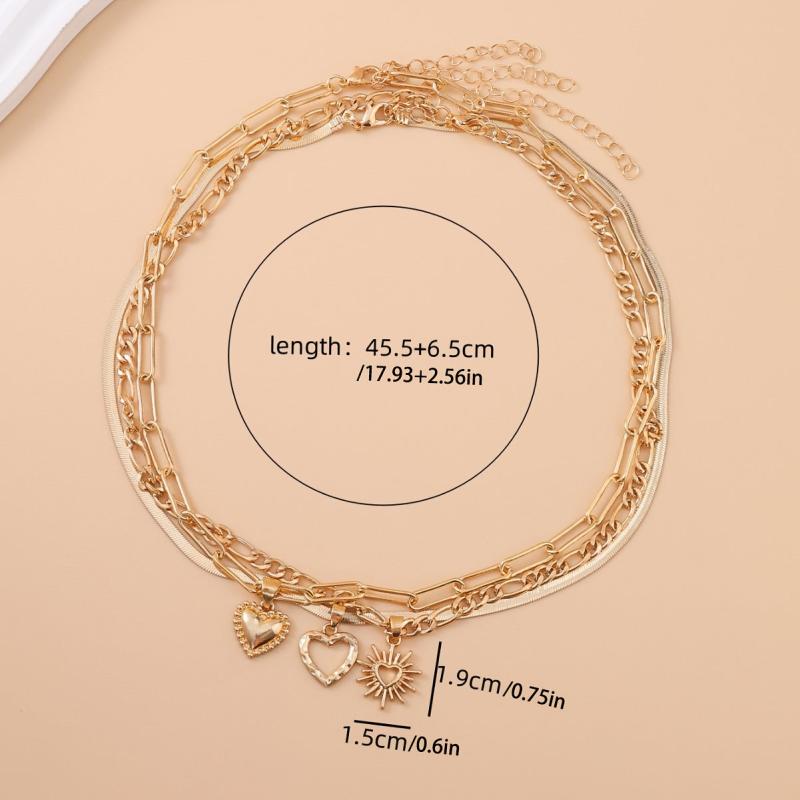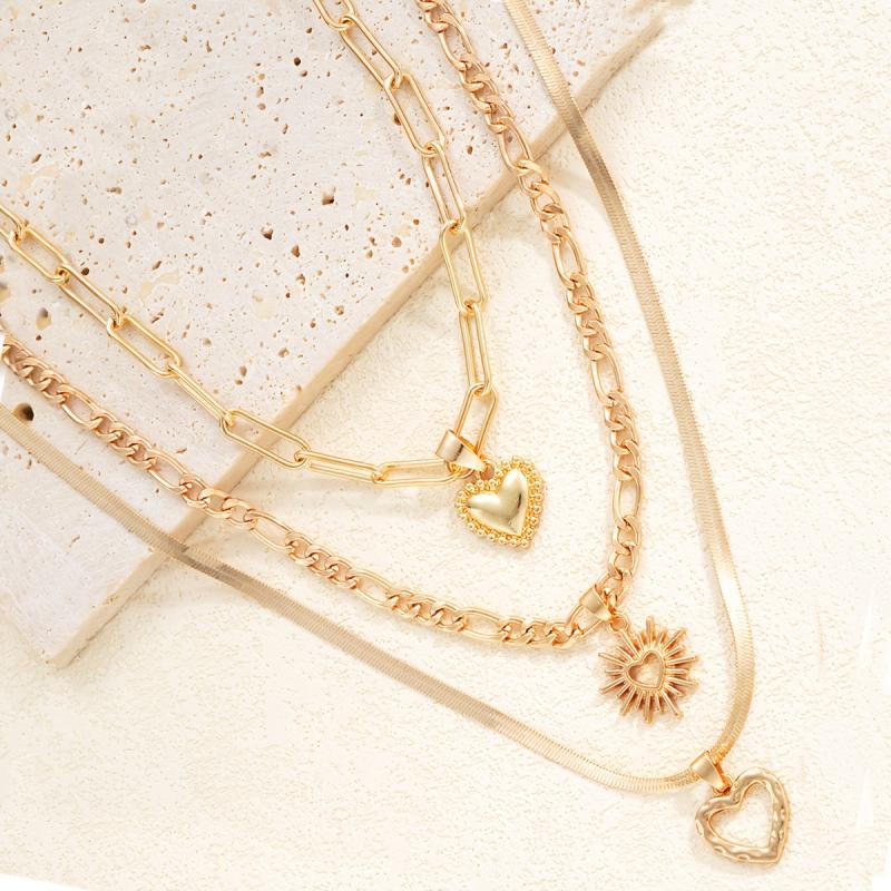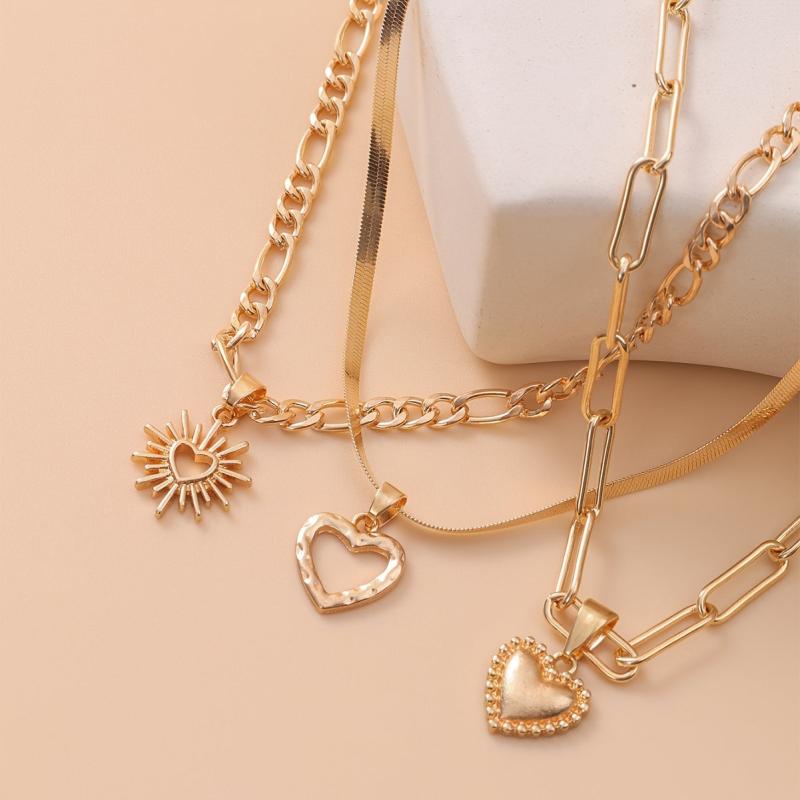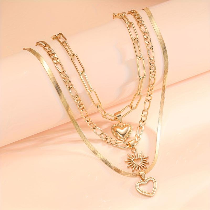 This 3-piece necklace set features heart and sun pendants on golden tone snake chains. Perfect for any occasion - beach vacation, date night, party, dinner, or daily wear.