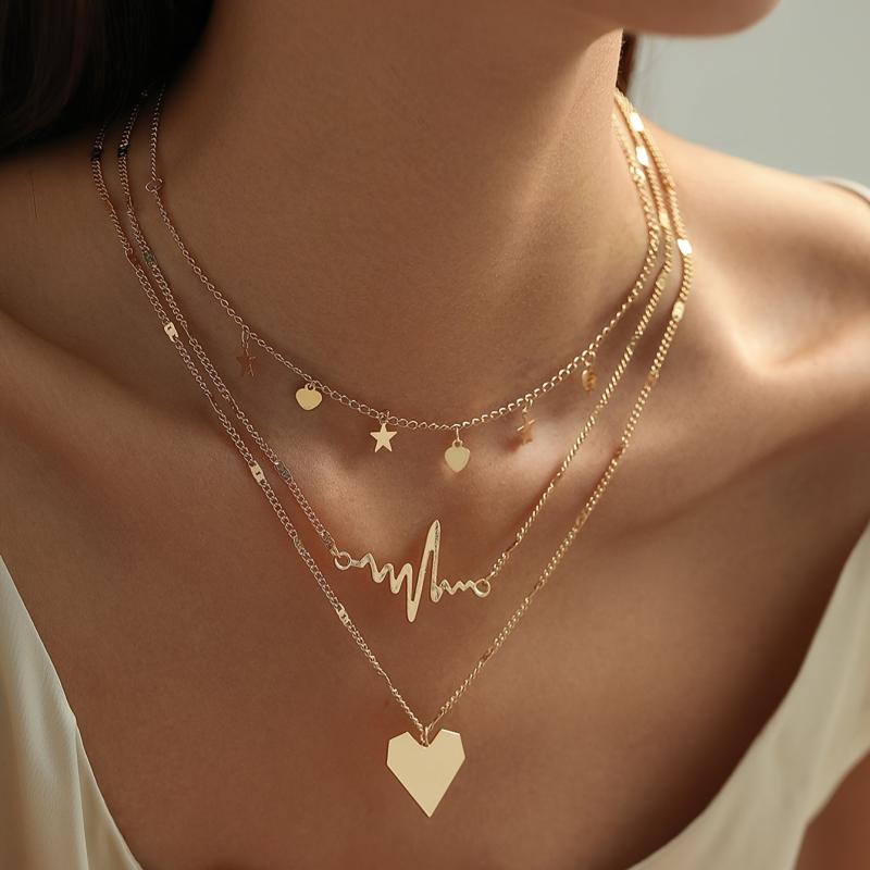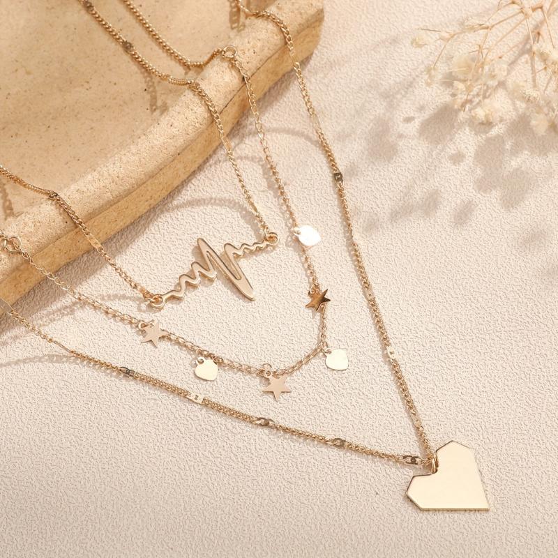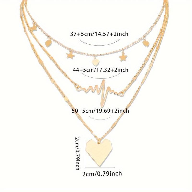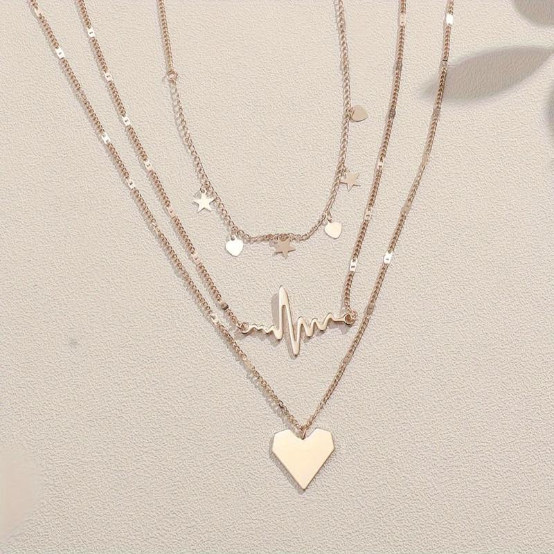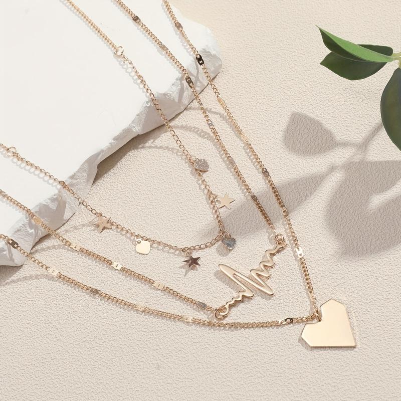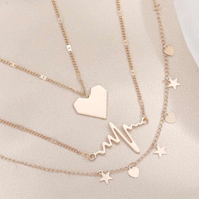 Add a touch of romance with this 3pcs set of love heart electrocardiogram shape pendant clavicle chain layer necklaces. Perfect for daily wear and party decorations.