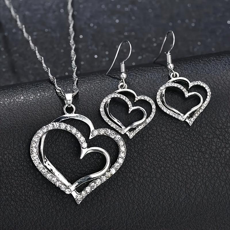 This 3-piece jewelry set includes sparkling heart earrings and a matching necklace. It is a timeless wedding jewelry gift and party favor for women. Perfect for any special occasion.
