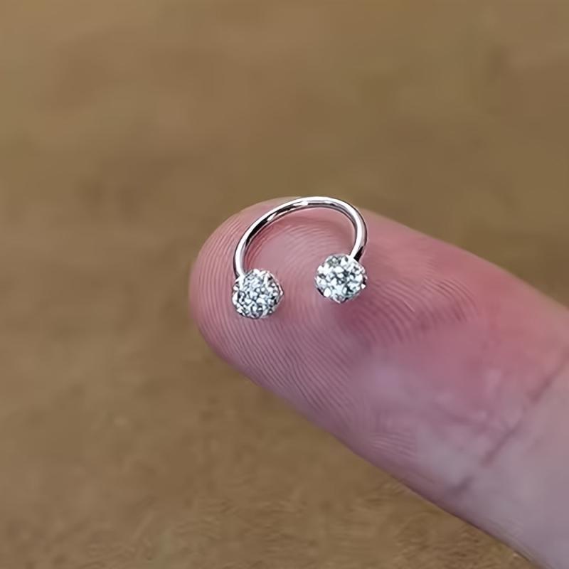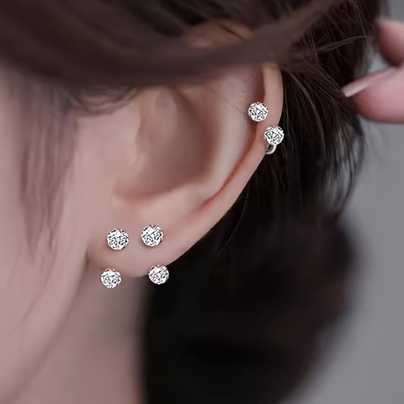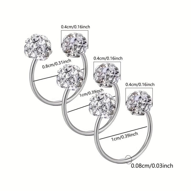 3pcs Stainless Steel Rhinestone Ball Earrings & Ear Bone Studs Set
