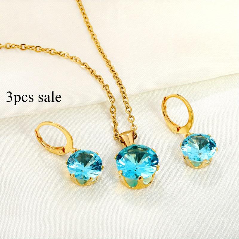 3pcs Women's French Synth. Steel Earrings & Collarbone Chain Set