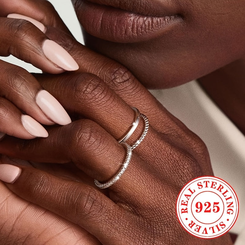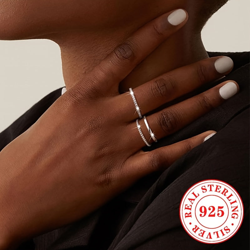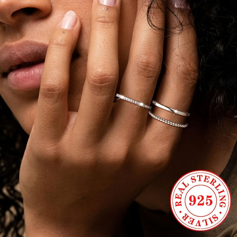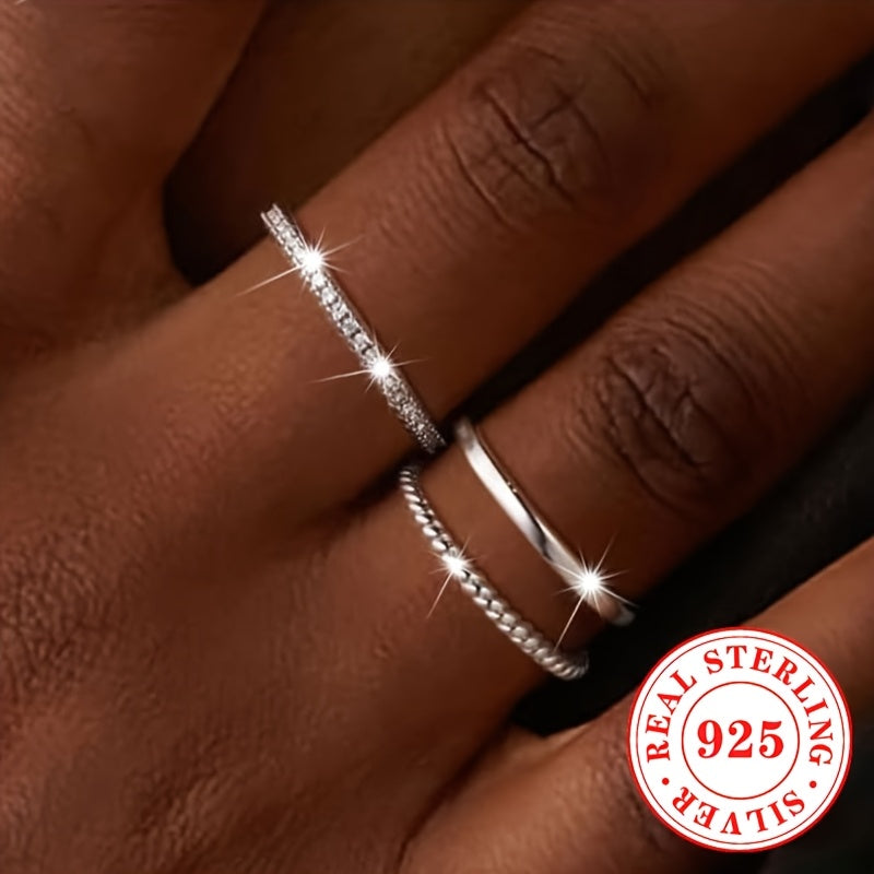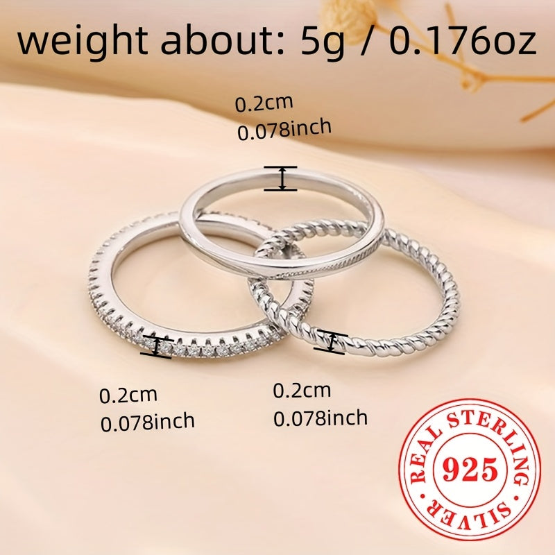 This set includes three rings featuring synthetic zirconia stones in a timeless design. Made of 5G S925 pure silver, these rings are perfect for daily wear or stacking.