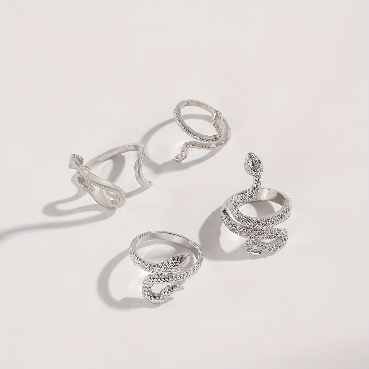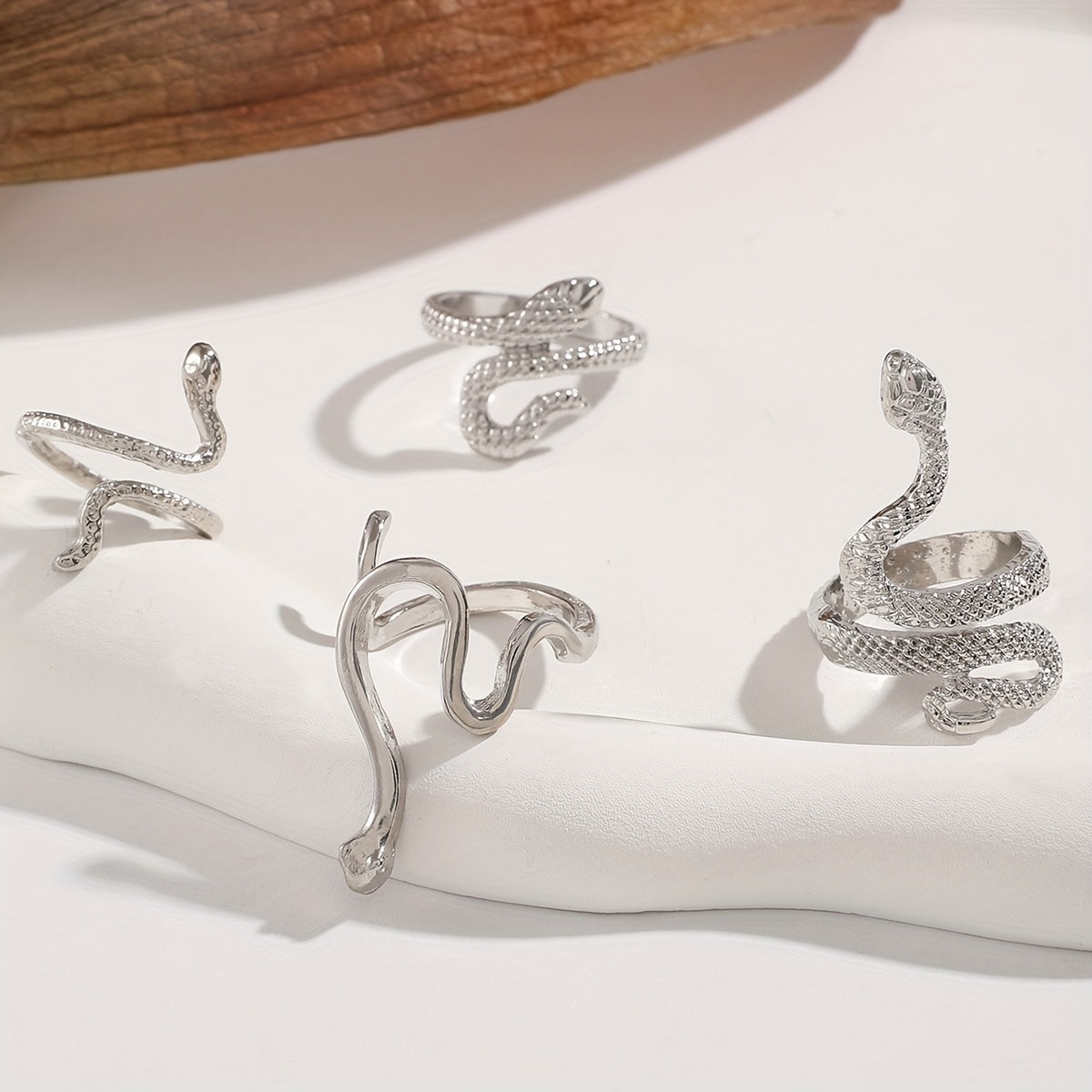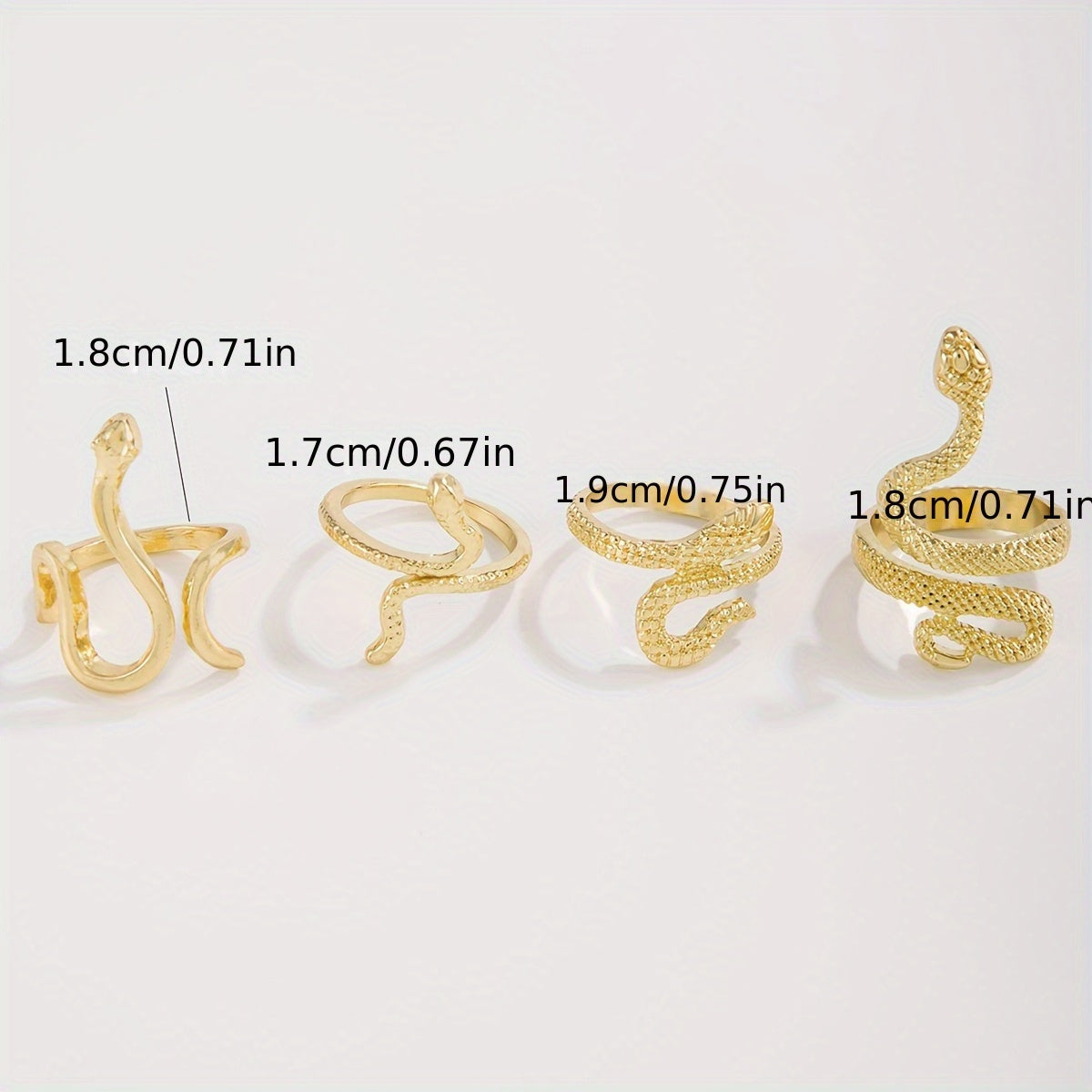 4pcs Punk Snake Ring Set Metal Alloy Rings with Snake Designs