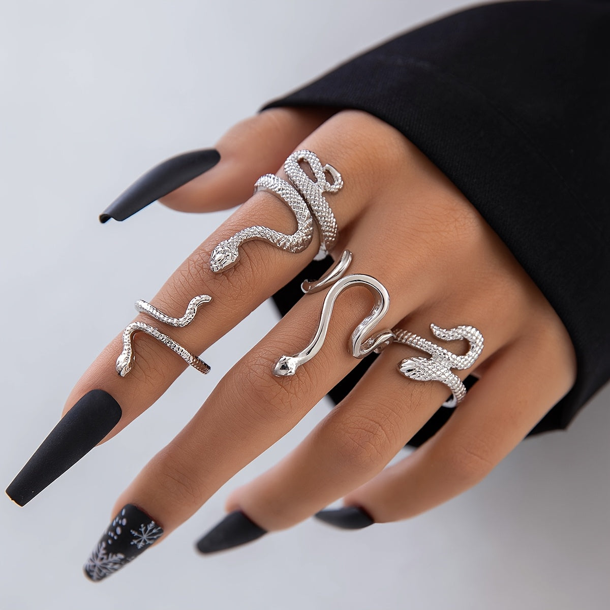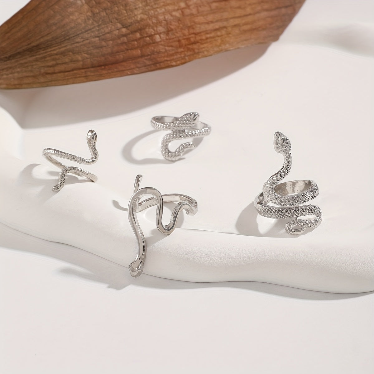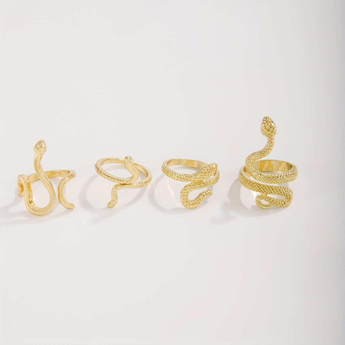 4pcs Punk Snake Ring Set Metal Alloy Rings with Snake Designs