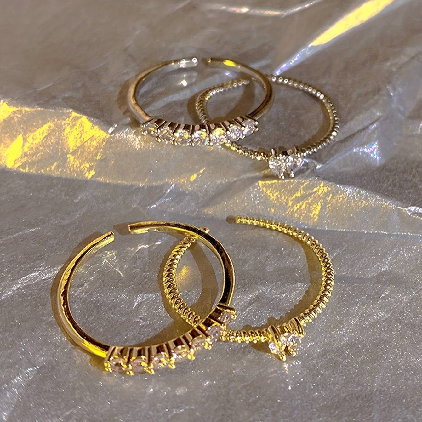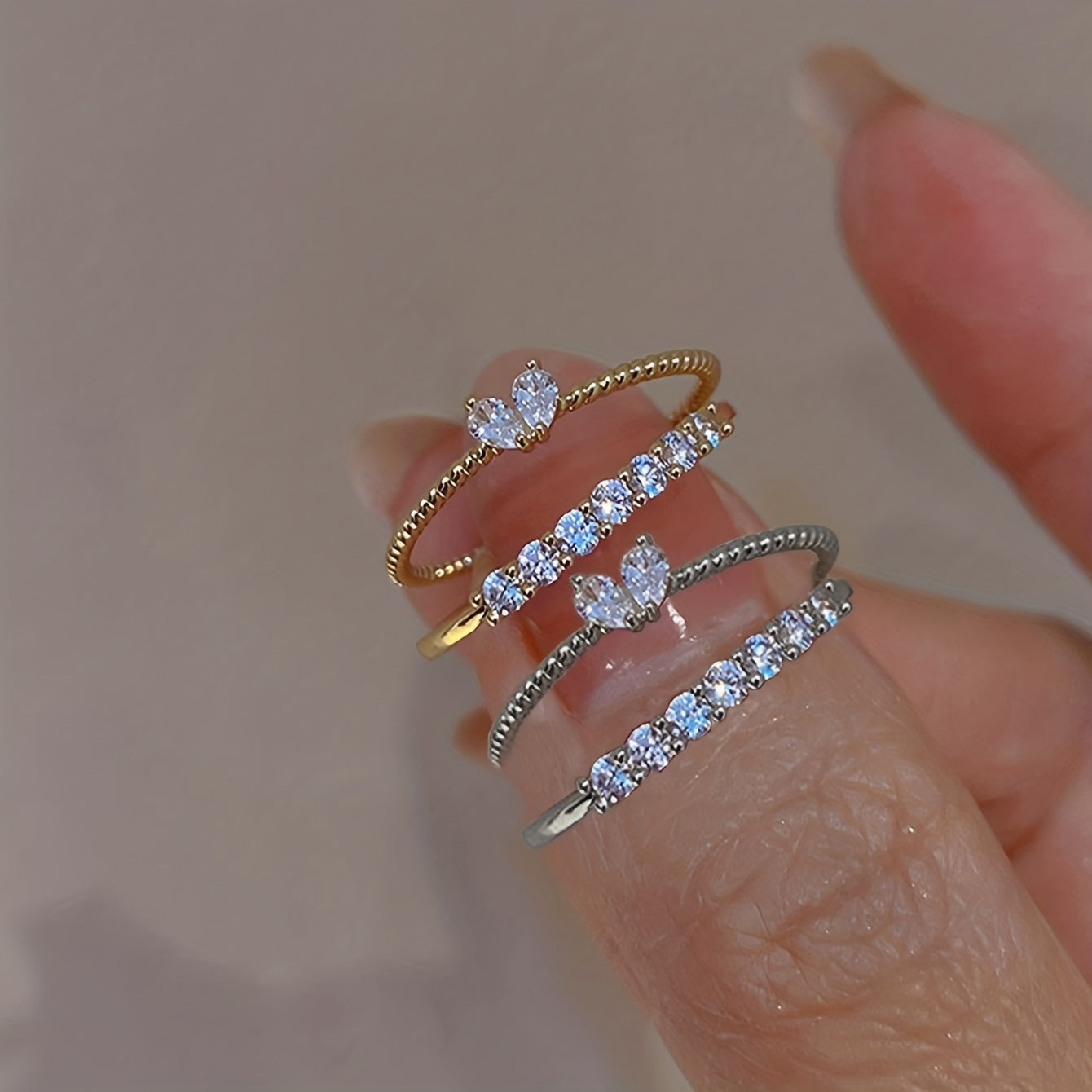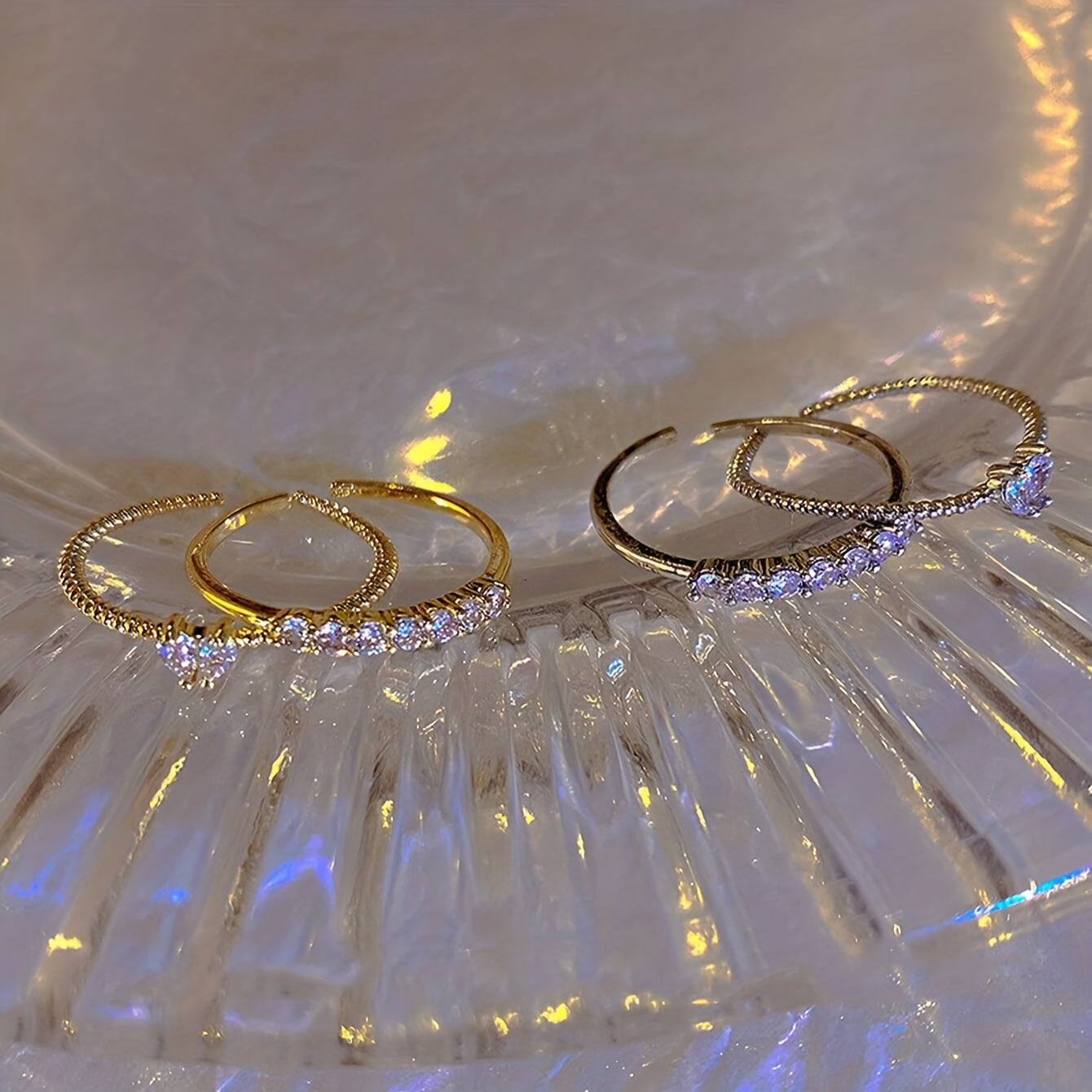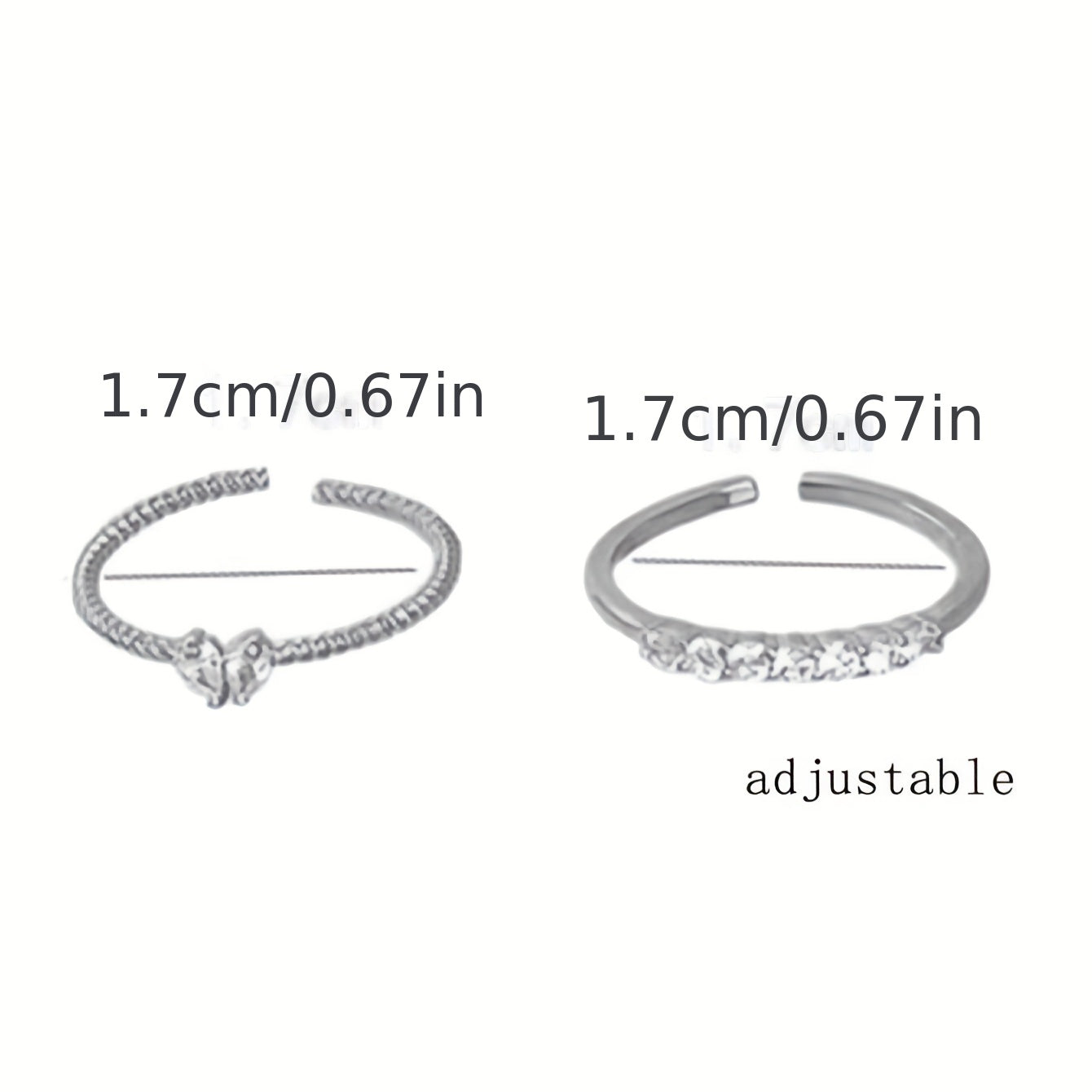 Elevate your look with these dazzling heart ring set featuring a Y2K bling style. Each ring is adjustable to fit any finger size and comes in gold and silver colors.