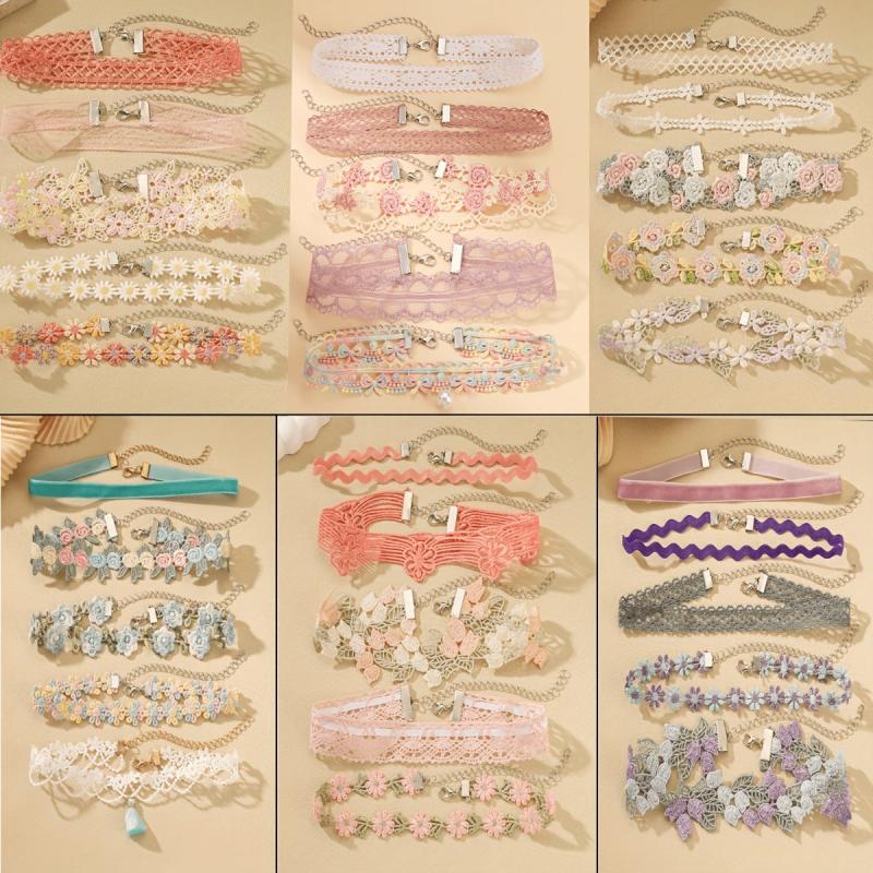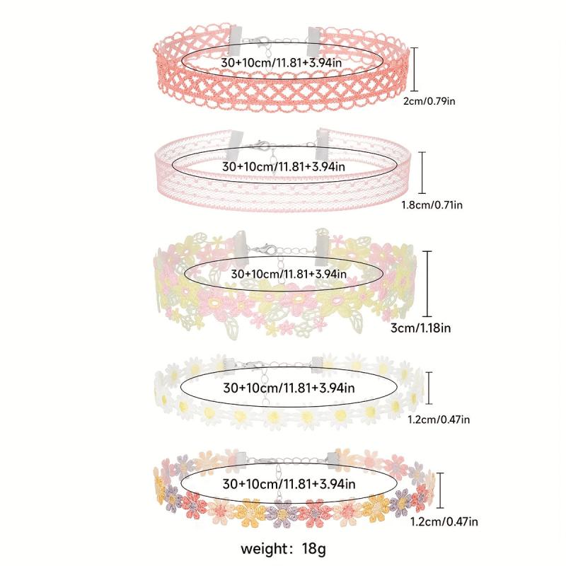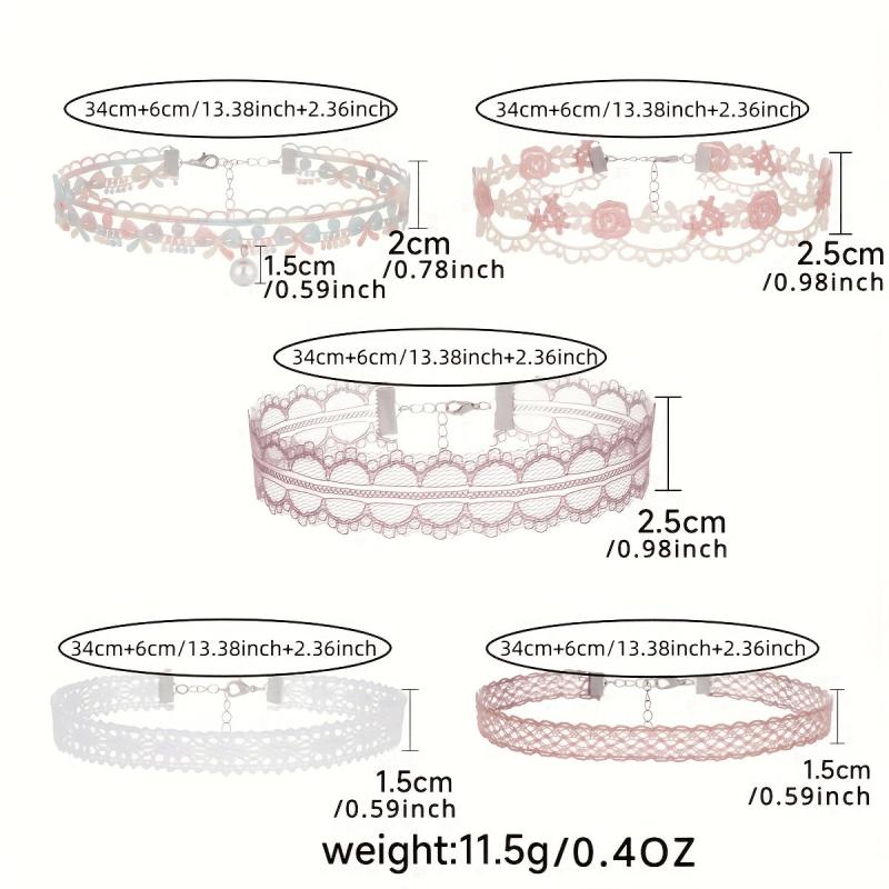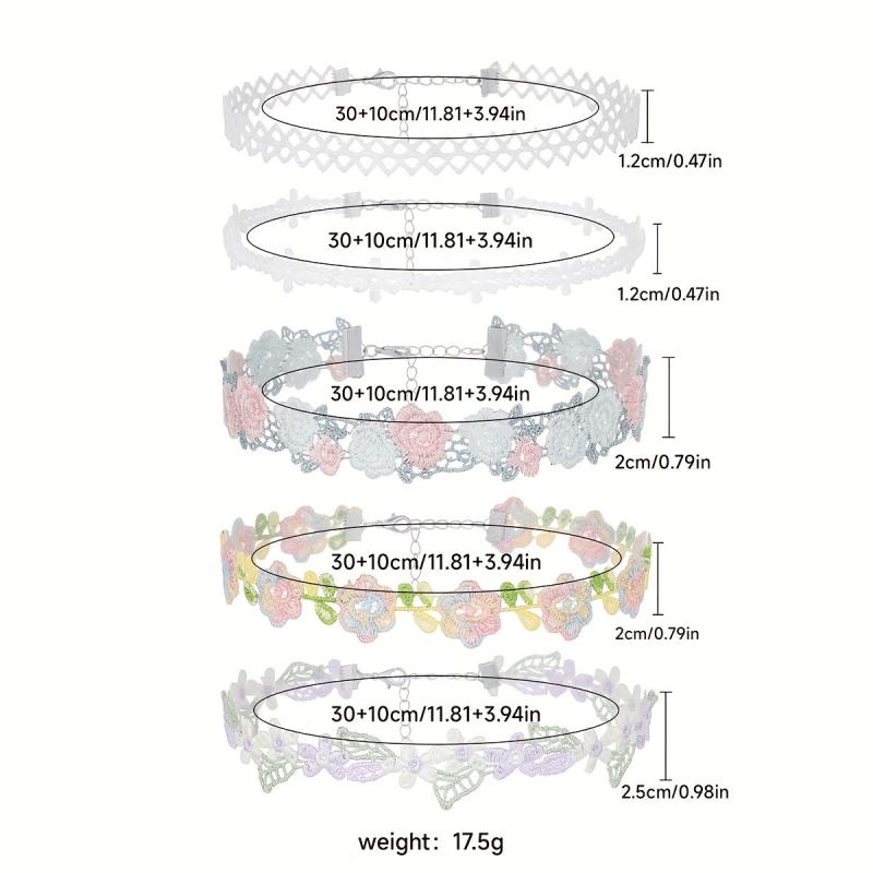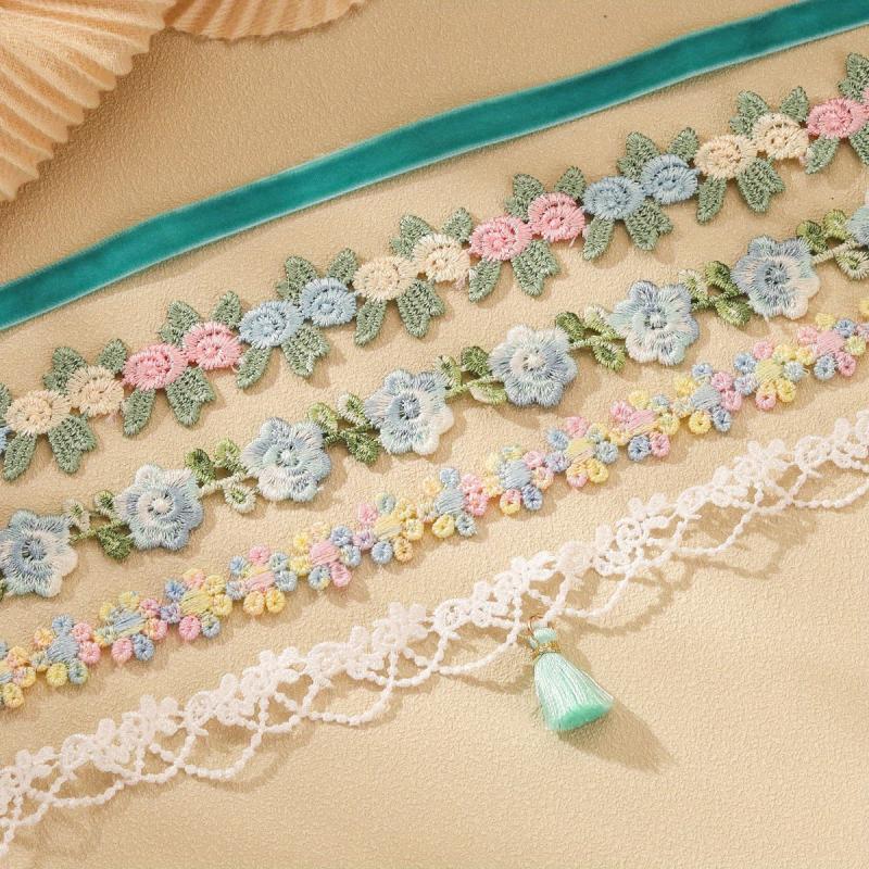 Elevate your summer look with this set of 5 nylon lace choker necklaces that exude bohemian charm. Perfect for daily wear and special occasions.