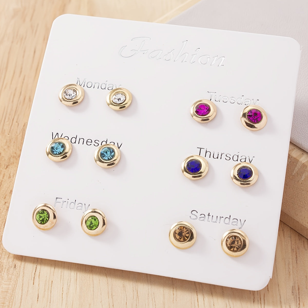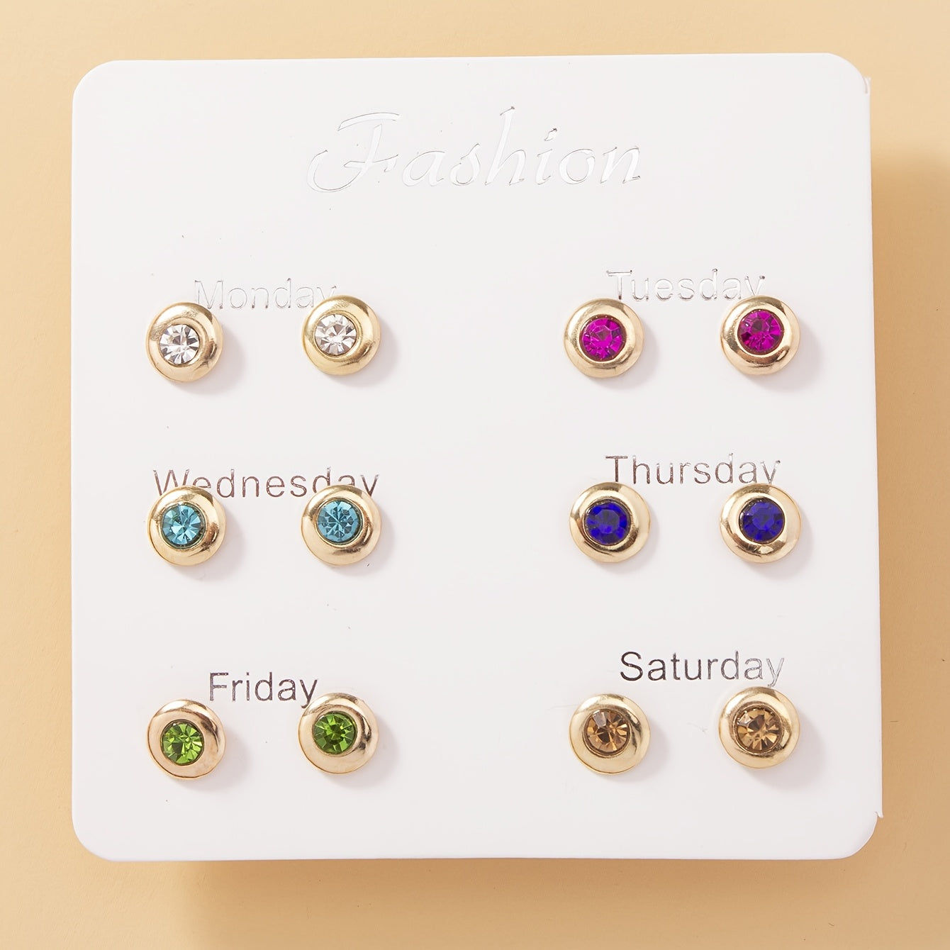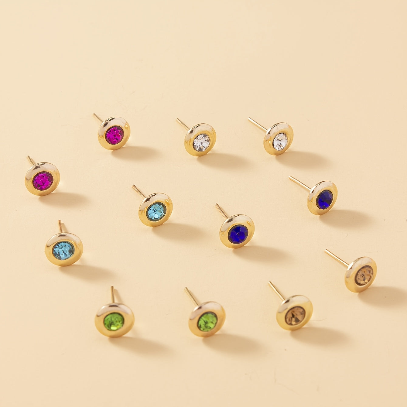 • 6 pairs of stylish metal earrings with rhinestones