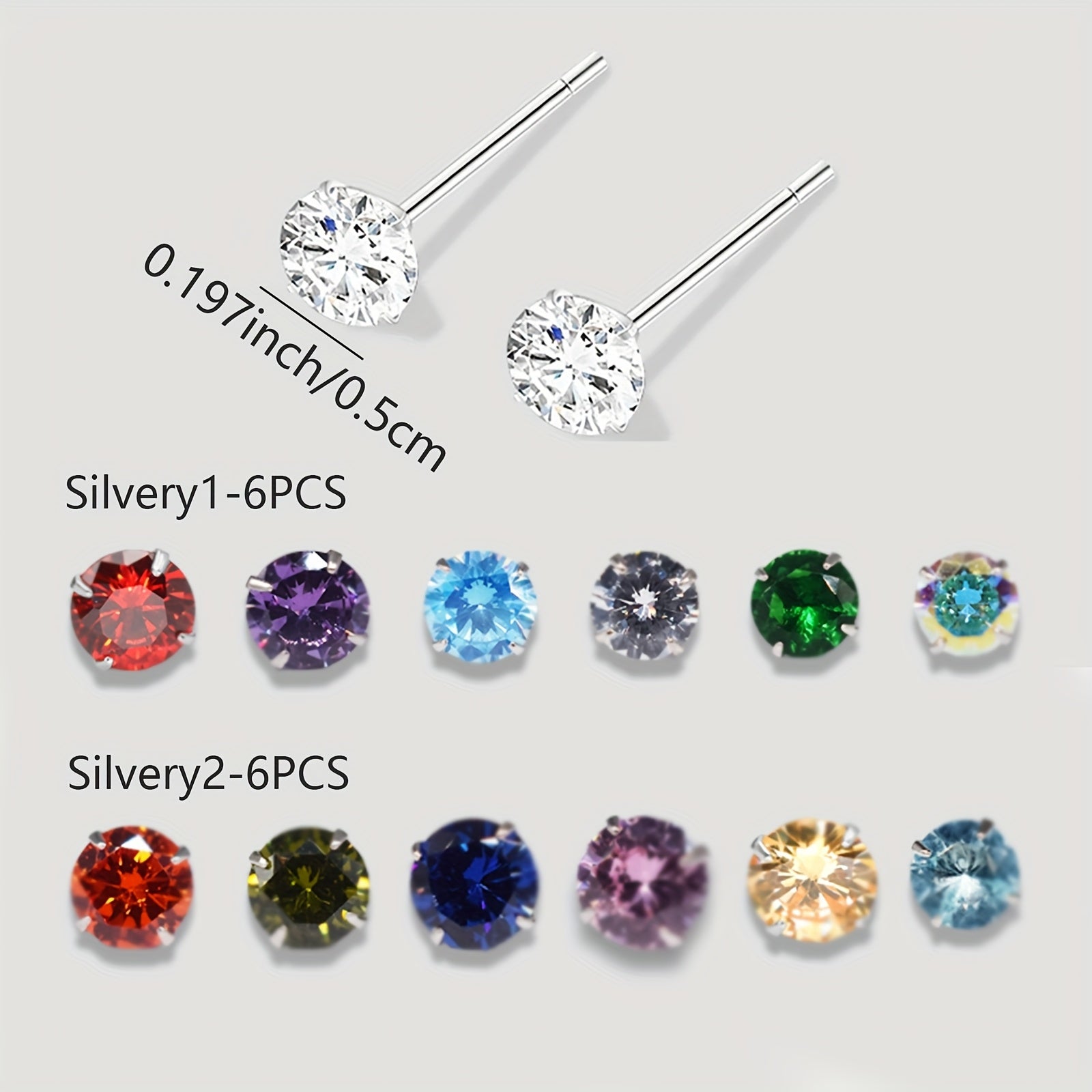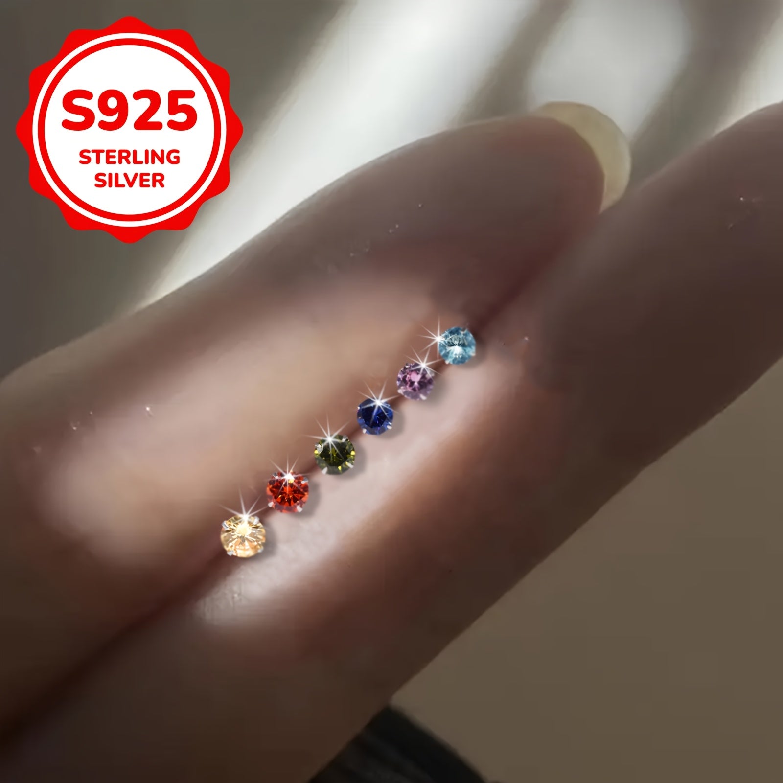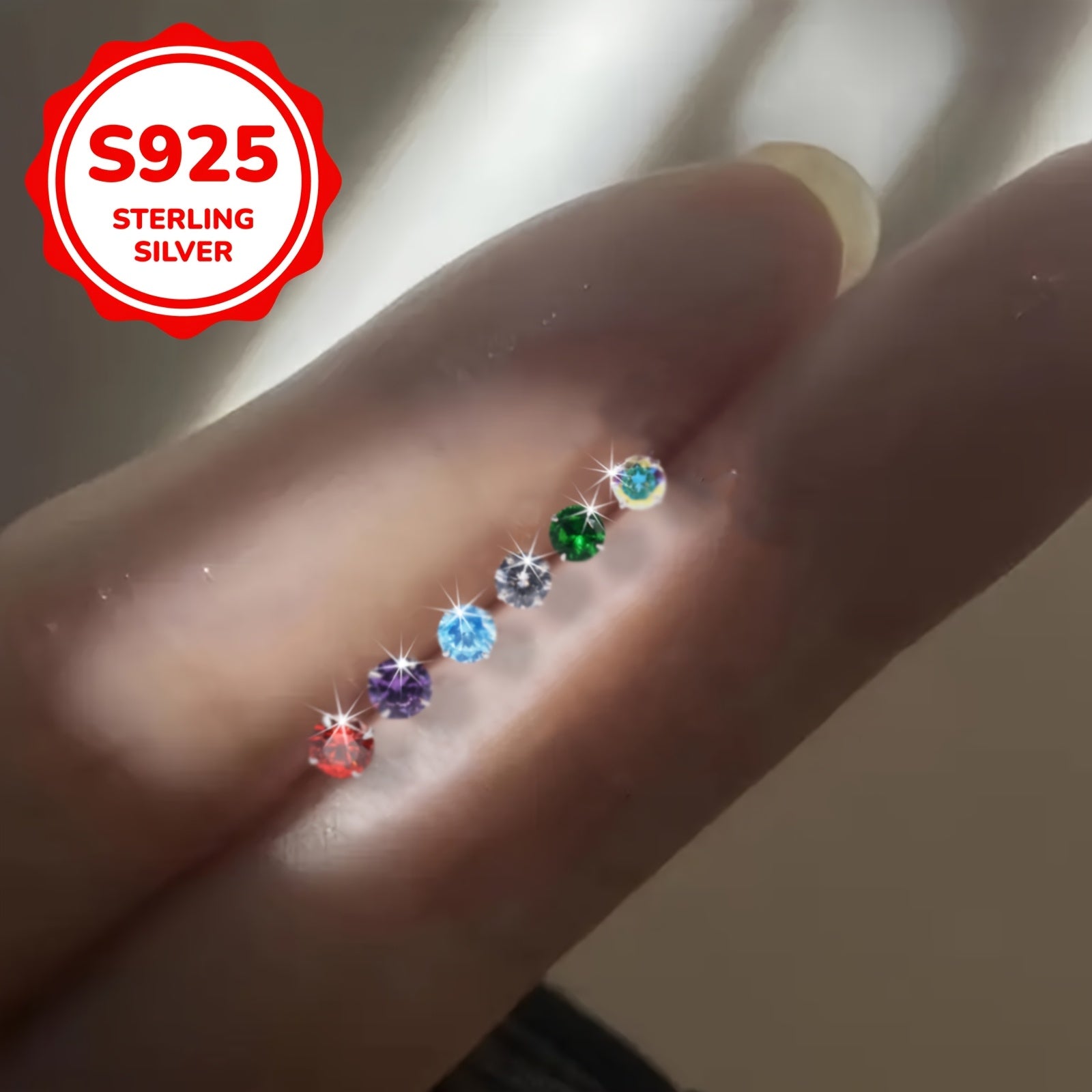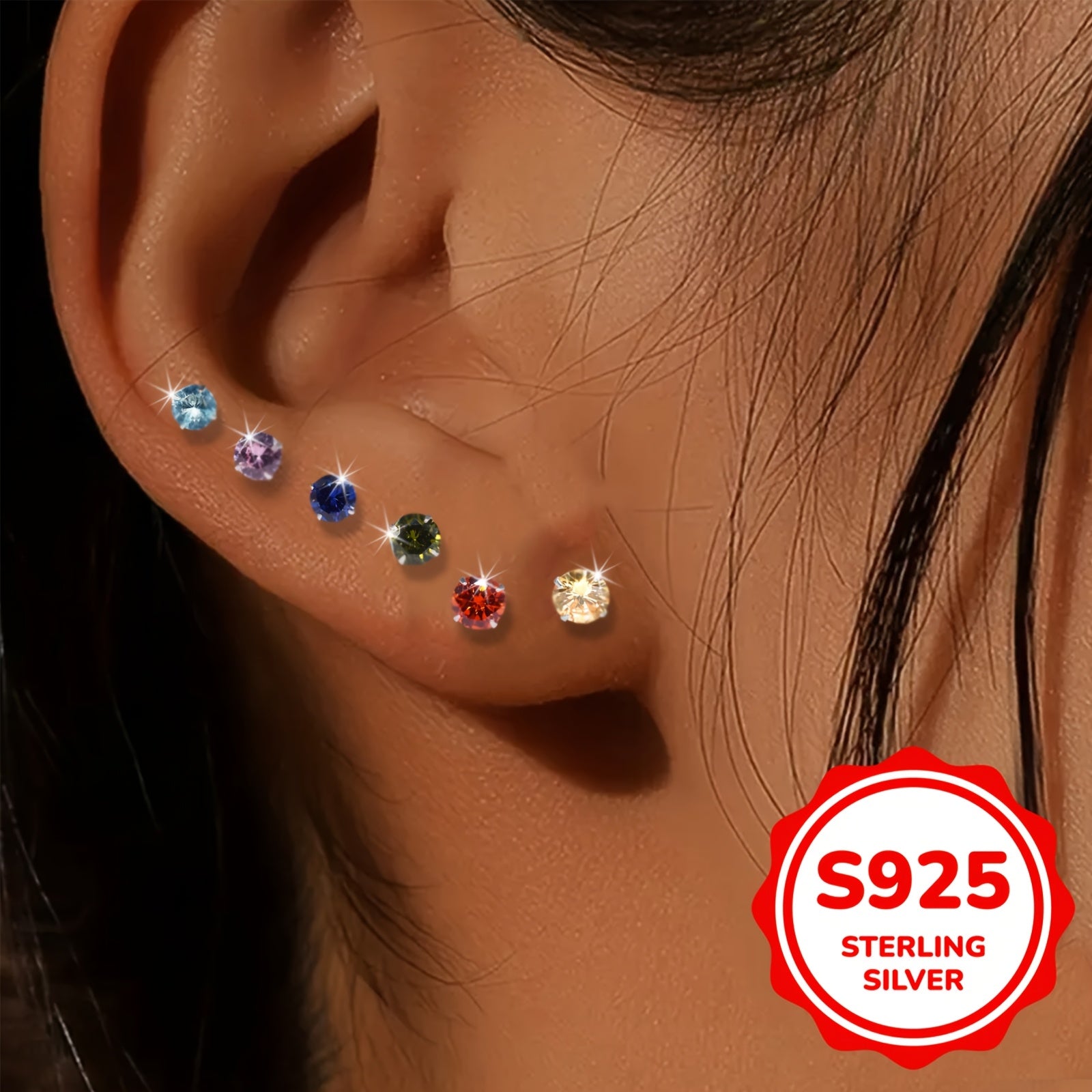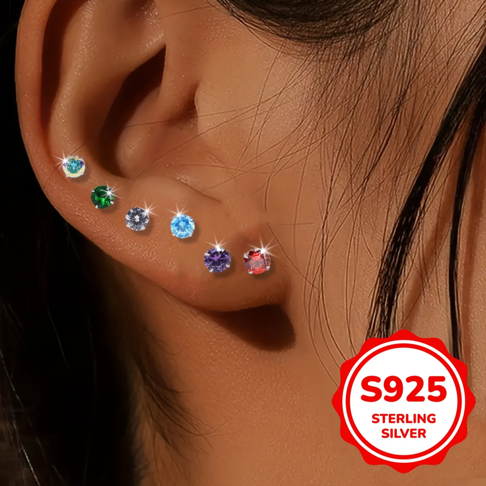 Elegant set of 6 pairs of ear studs inlaid with synthetic zirconia. Made of S925 silver, lightweight at 3.5g, perfect for daily wear, weddings, graduations, and more.