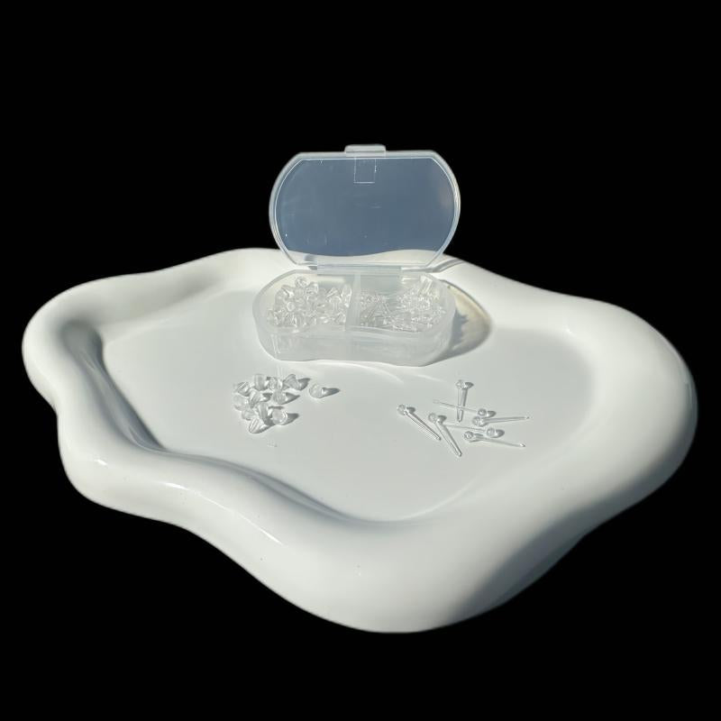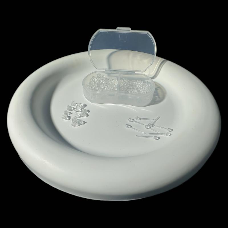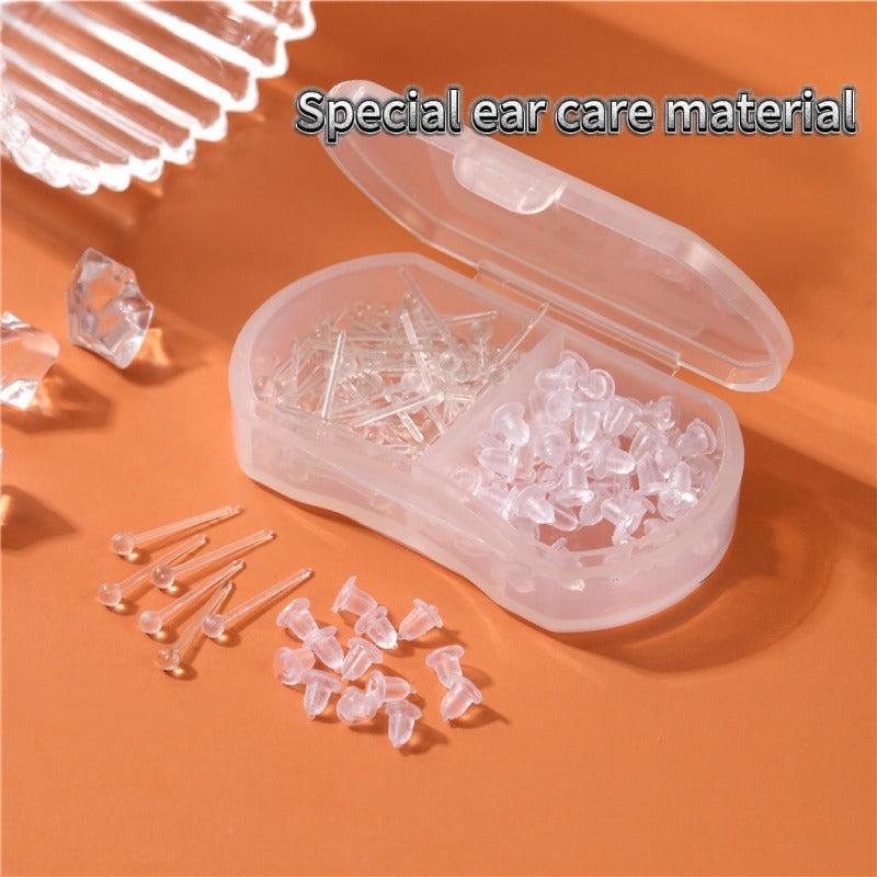 A stylish set of versatile resin stud earrings with silicone ear sticks for daily wear. Keep your piercings protected in fashion.