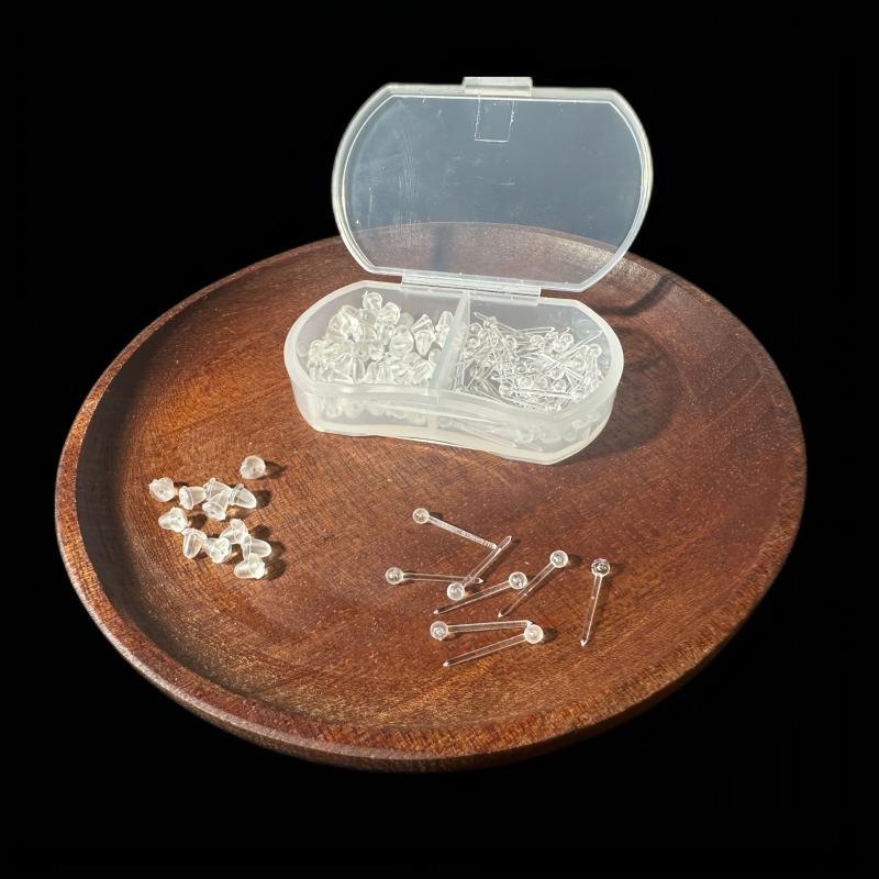60 Resin Transparent Stud Earrings Set with Ear Plugs