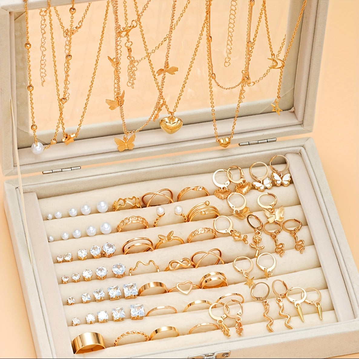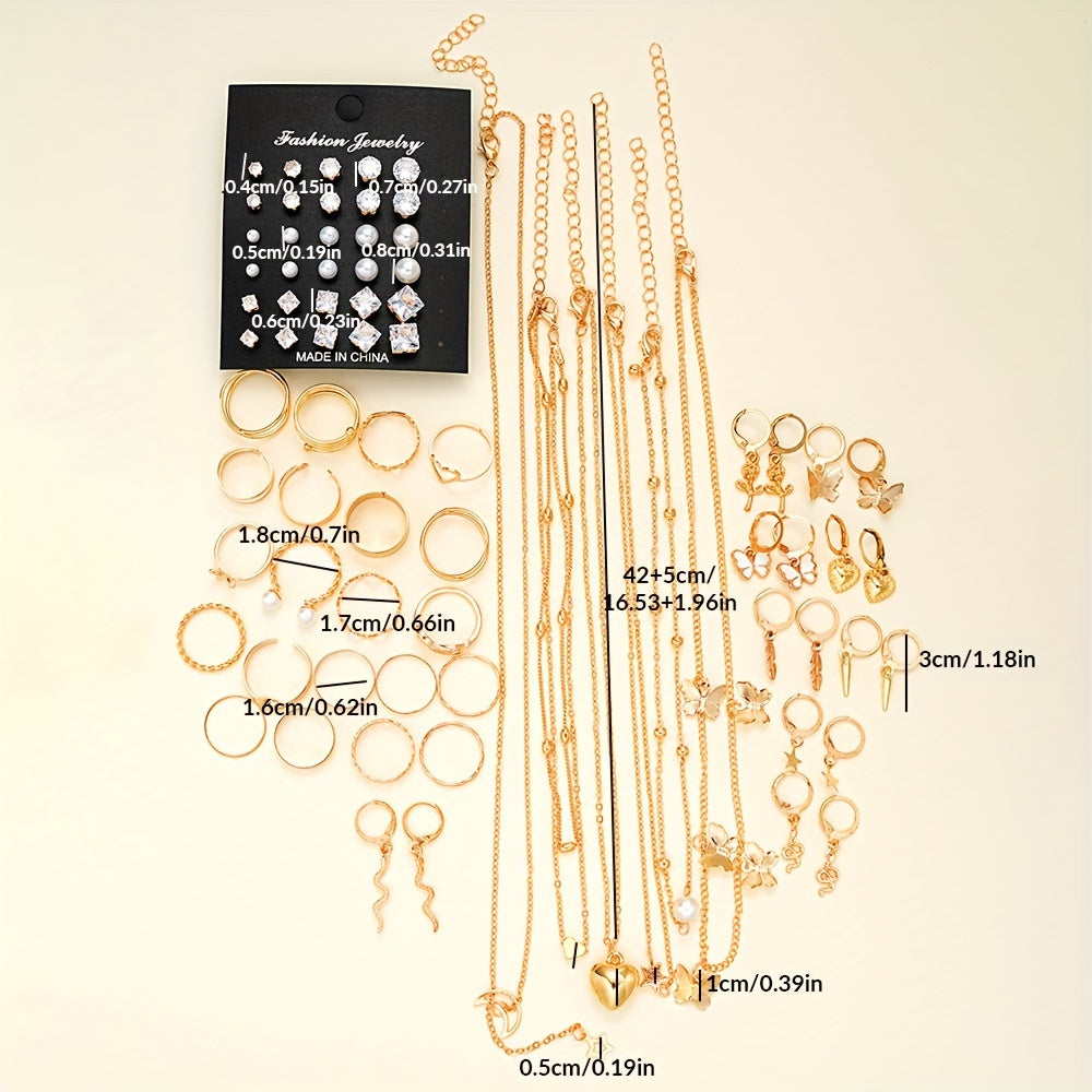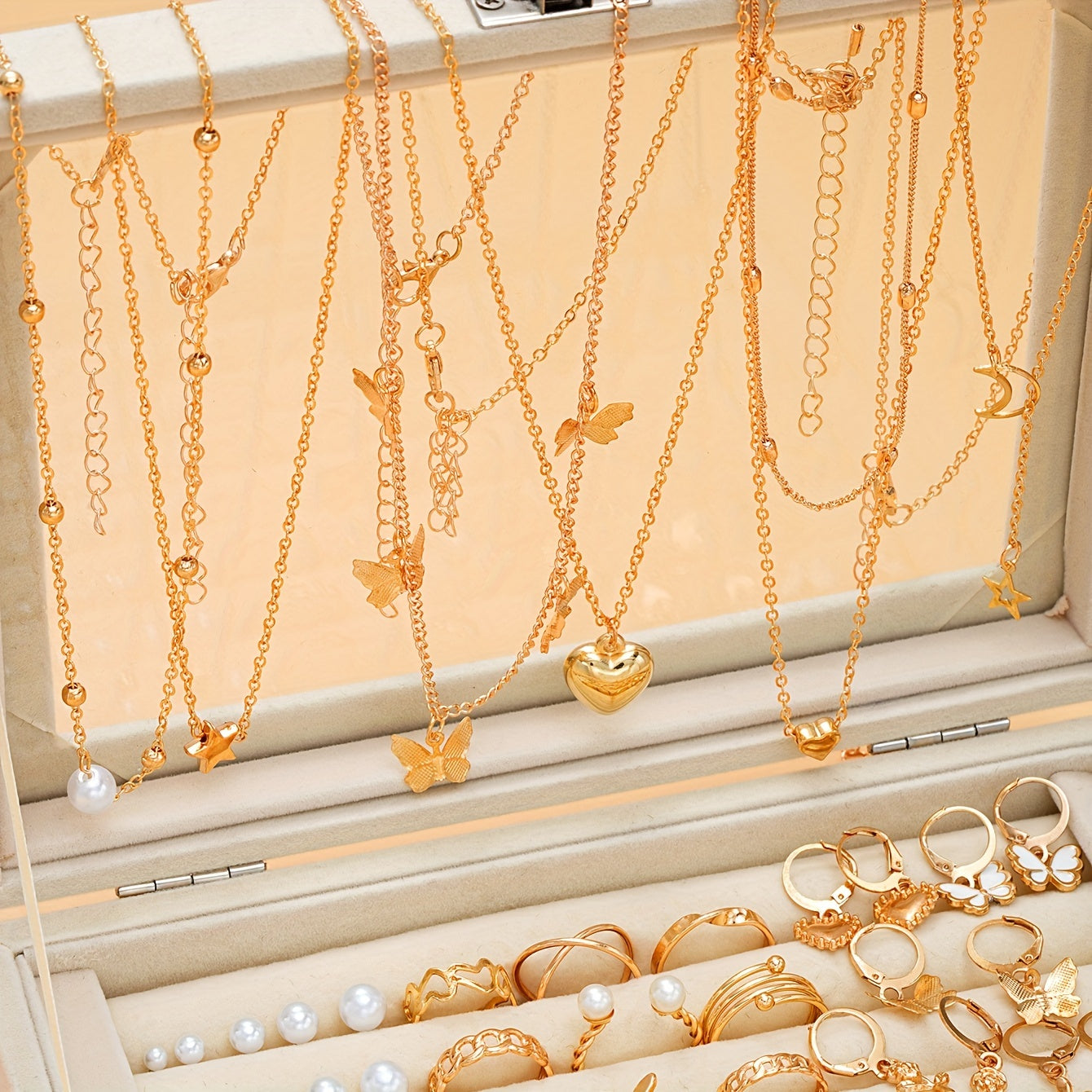 76pcs Fashionable Artificial Pearl Butterfly Love Star Necklace Earring Ring Set