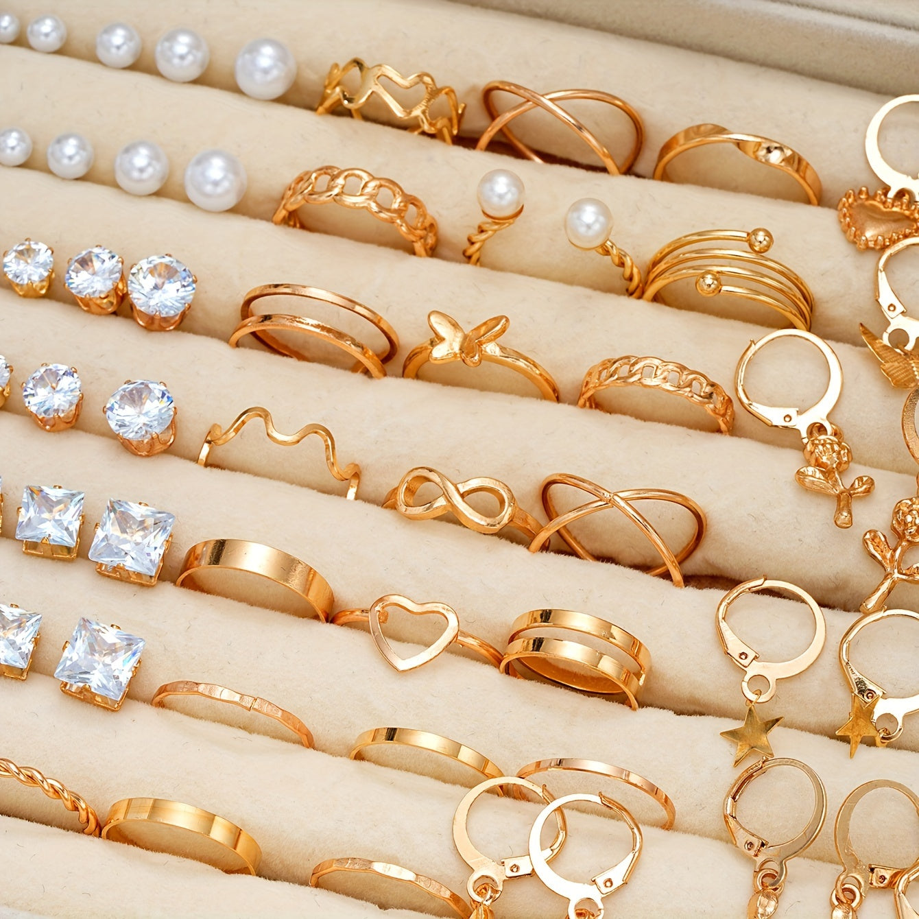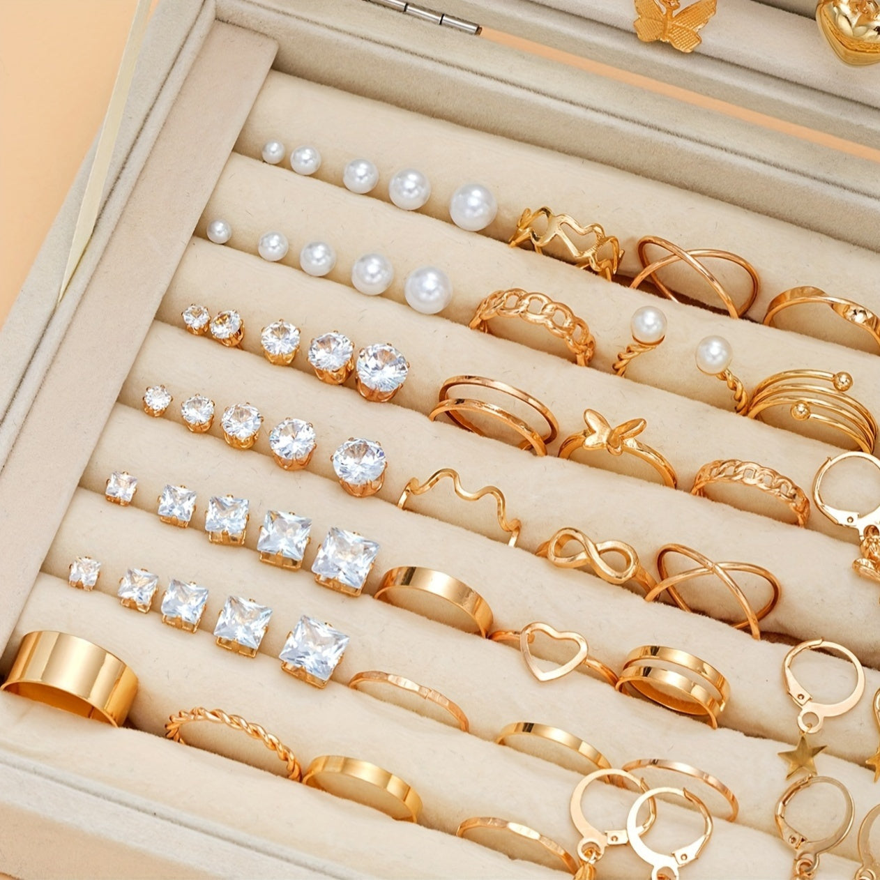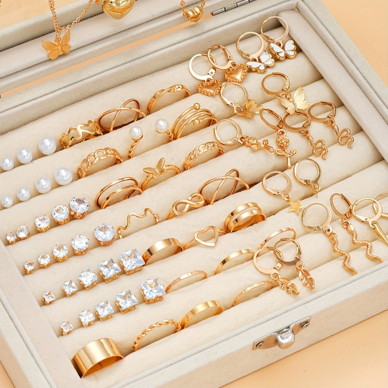 76pcs Fashionable Artificial Pearl Butterfly Love Star Necklace Earring Ring Set