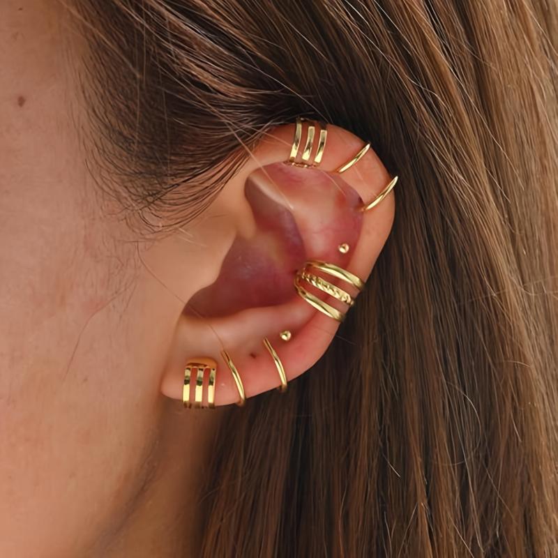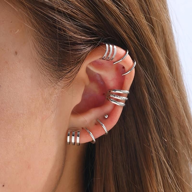 This 7pcs set of layer stackable ear cuffs is perfect for daily wear, parties, or as a Ramadan gift. Made from high-quality alloy, these ear cuffs are versatile and suitable for all seasons.