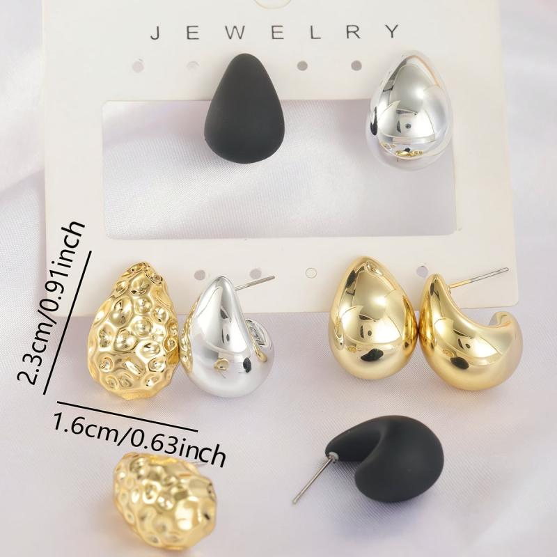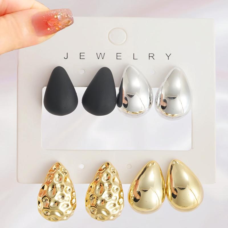 Enhance your style with this versatile set of 8 teardrop stud earrings. These minimalist earrings are perfect for daily wear, parties, and vacations.