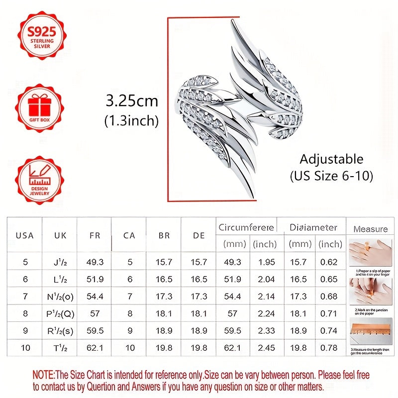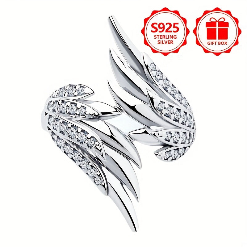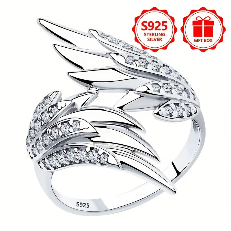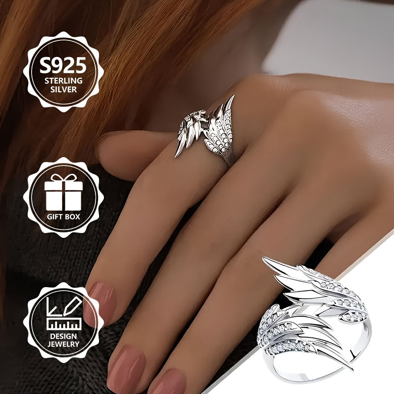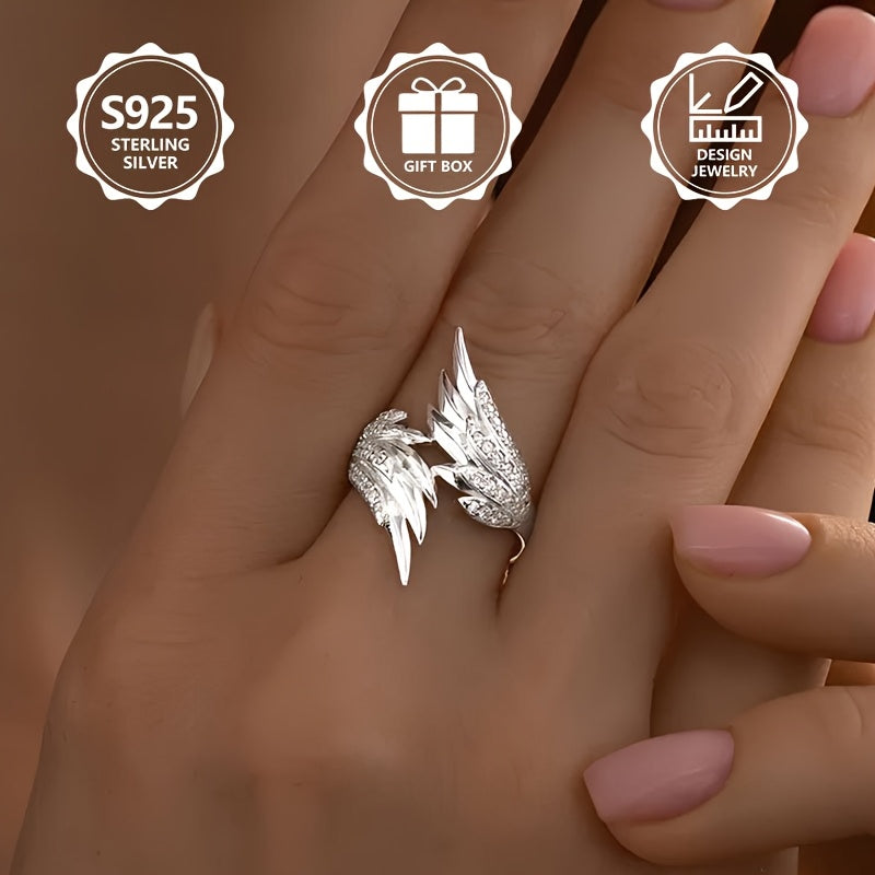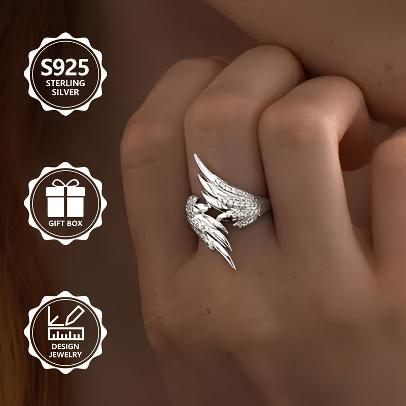 This 925 pure silvery women's ring features a pair of fashionable wings, making it a perfect gift for friends and family. Its unique design exudes personality and style.