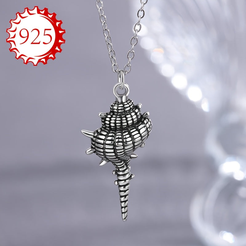 925 Silver Conch Pendant Necklace Retro Personalized Clavicle Chain
