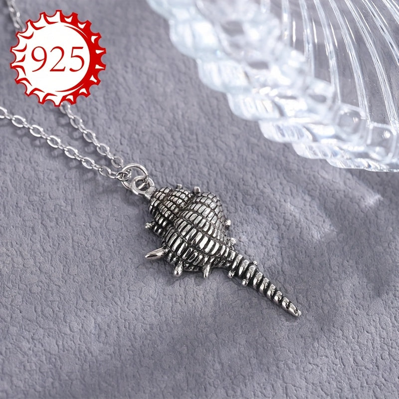 This one piece retro conch pendant necklace is made of 925 silver, hypoallergenic and stylish. It can be worn for a fashionable, versatile look that exudes a high-end, niche aesthetic.