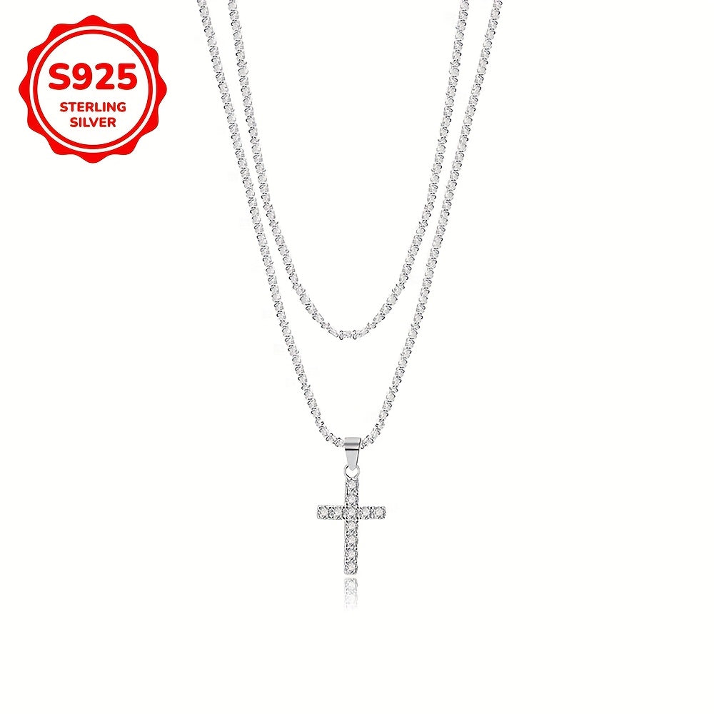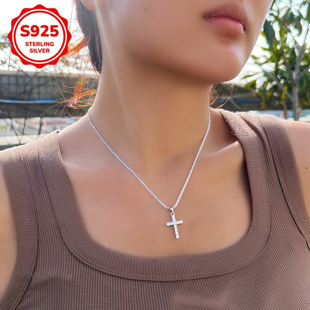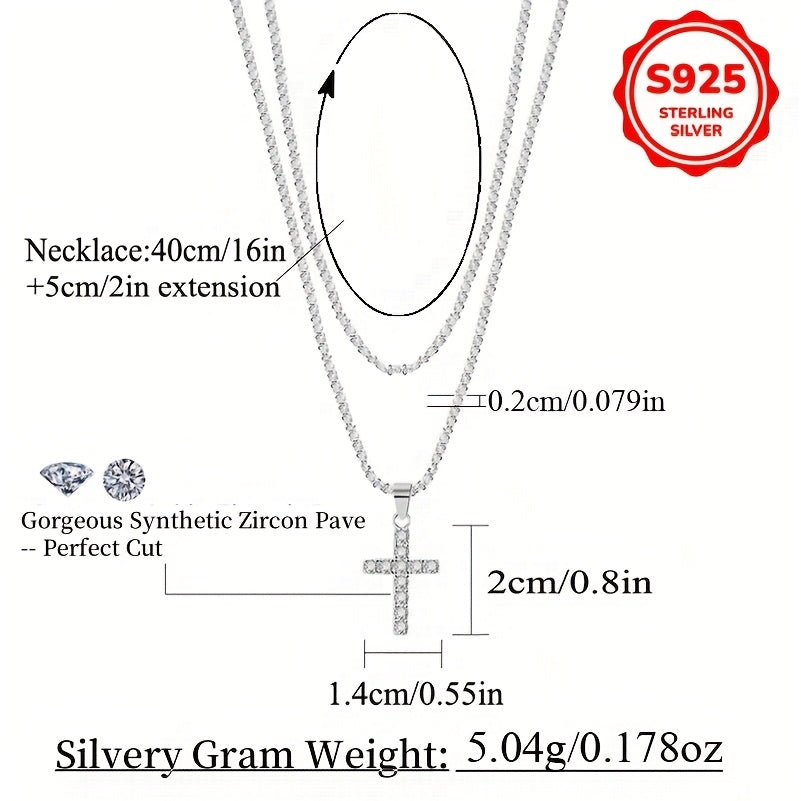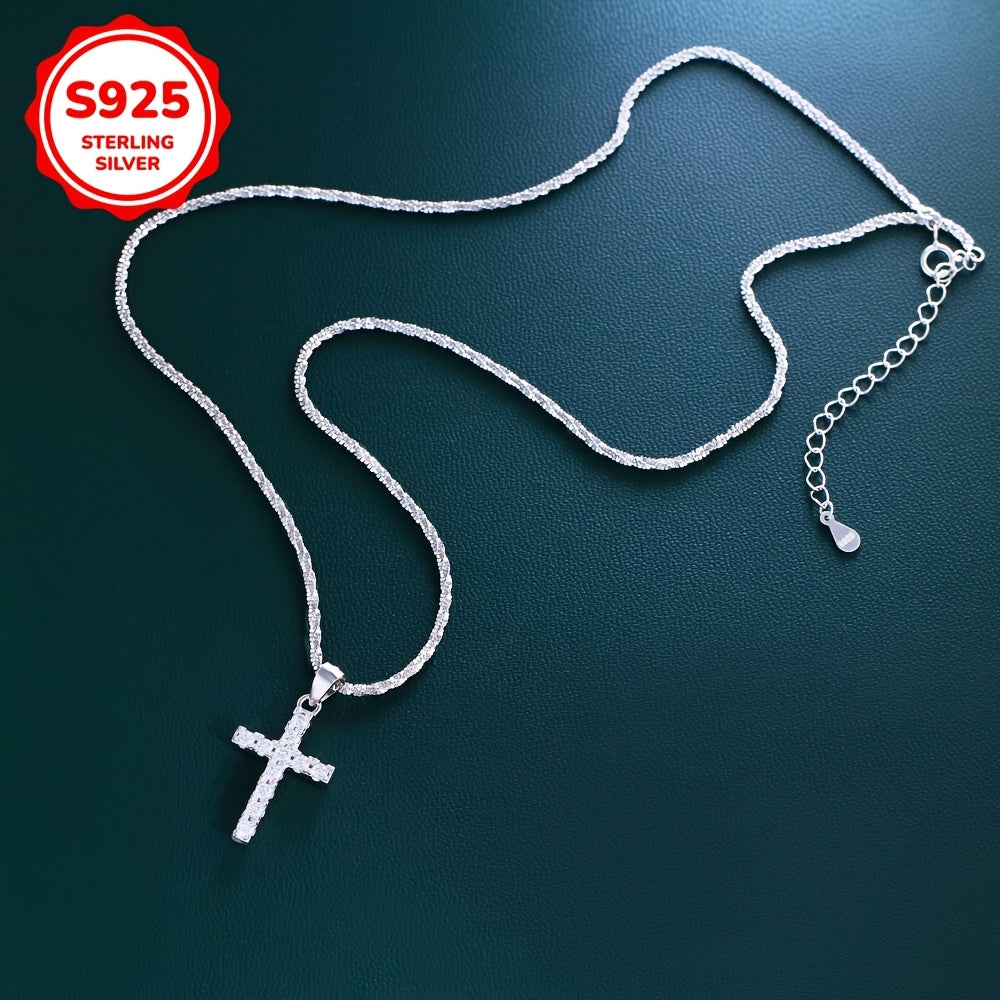 Beautiful 925 silver cross pendant necklace featuring sparkling zirconia stones. Hypoallergenic and perfect for everyday wear.