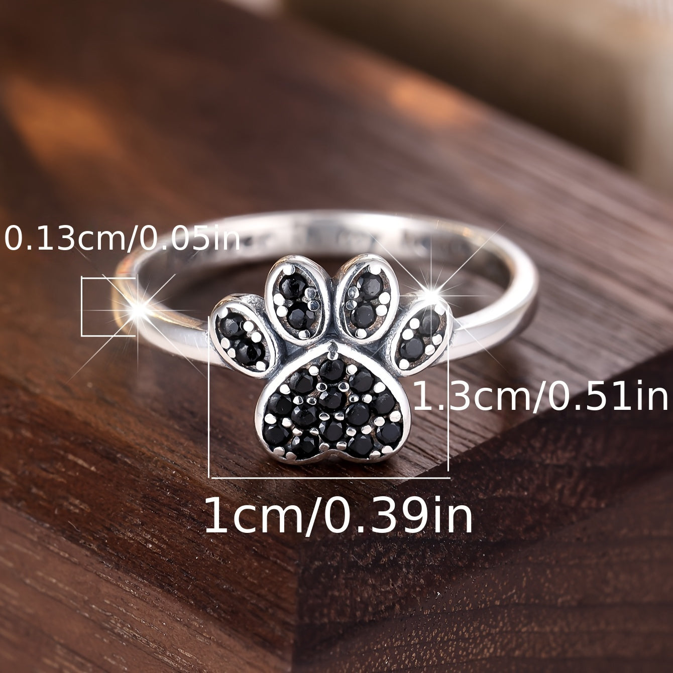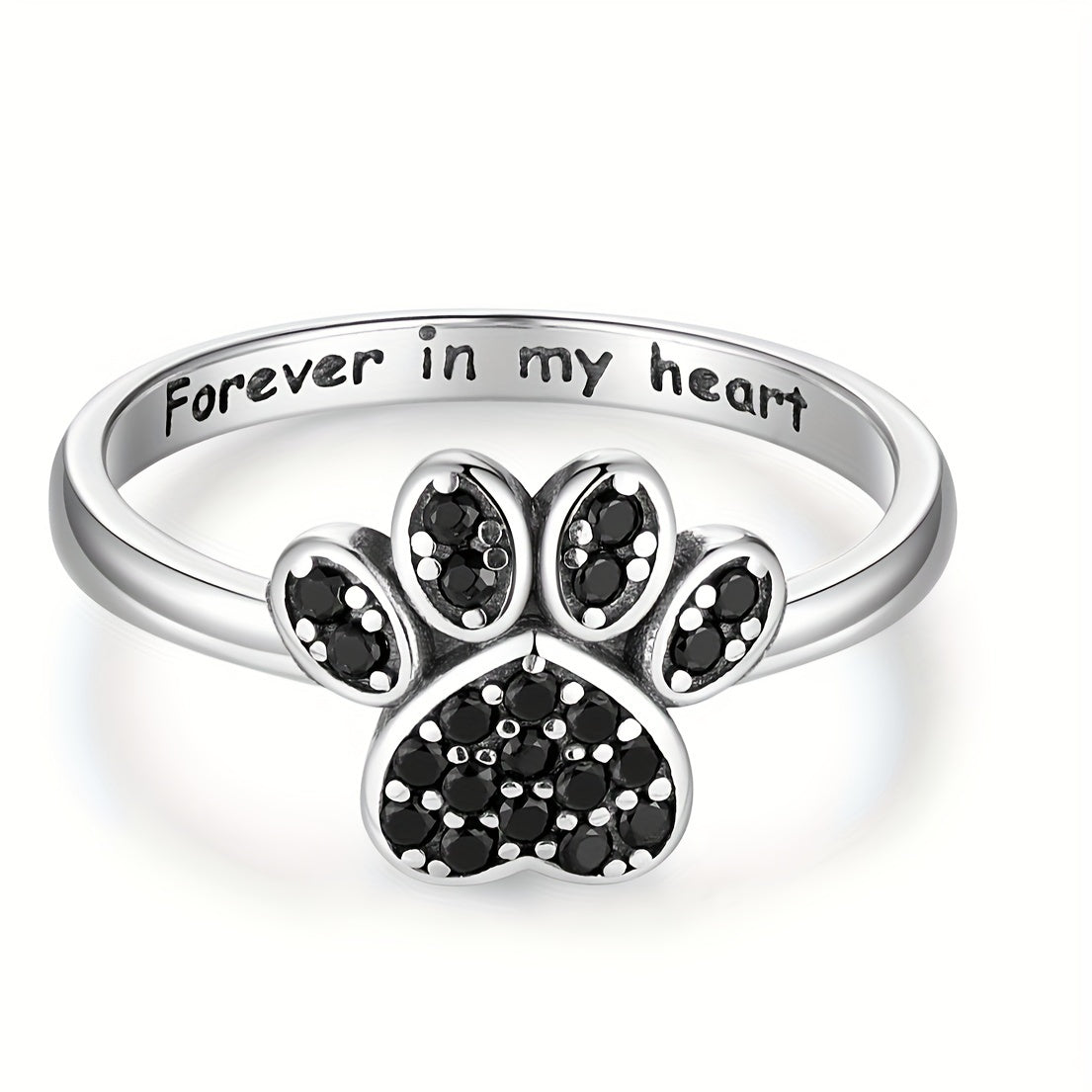 A stunning 925 sterling silver ring featuring a cubic zirconia cat paw print design. This versatile accessory is perfect for daily wear and makes a thoughtful gift for cat lovers.