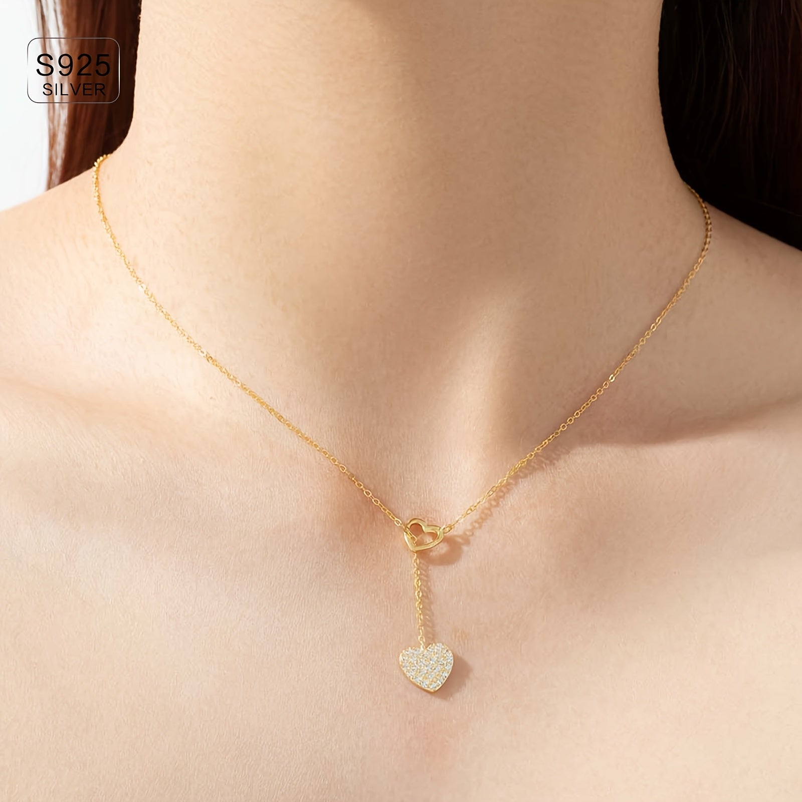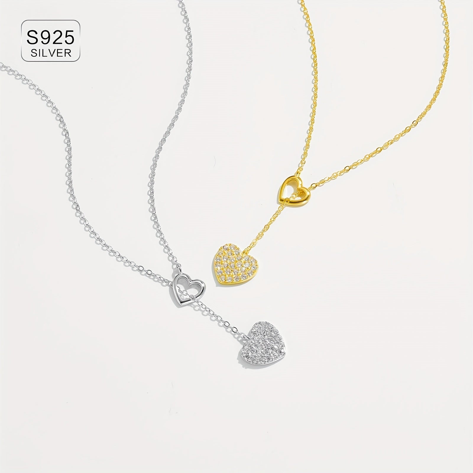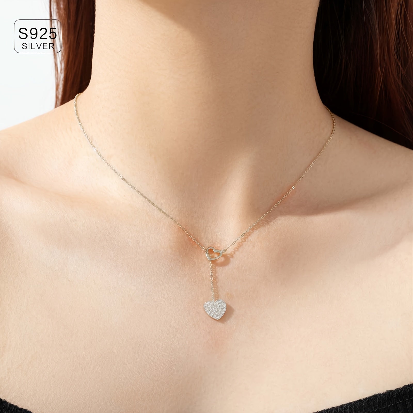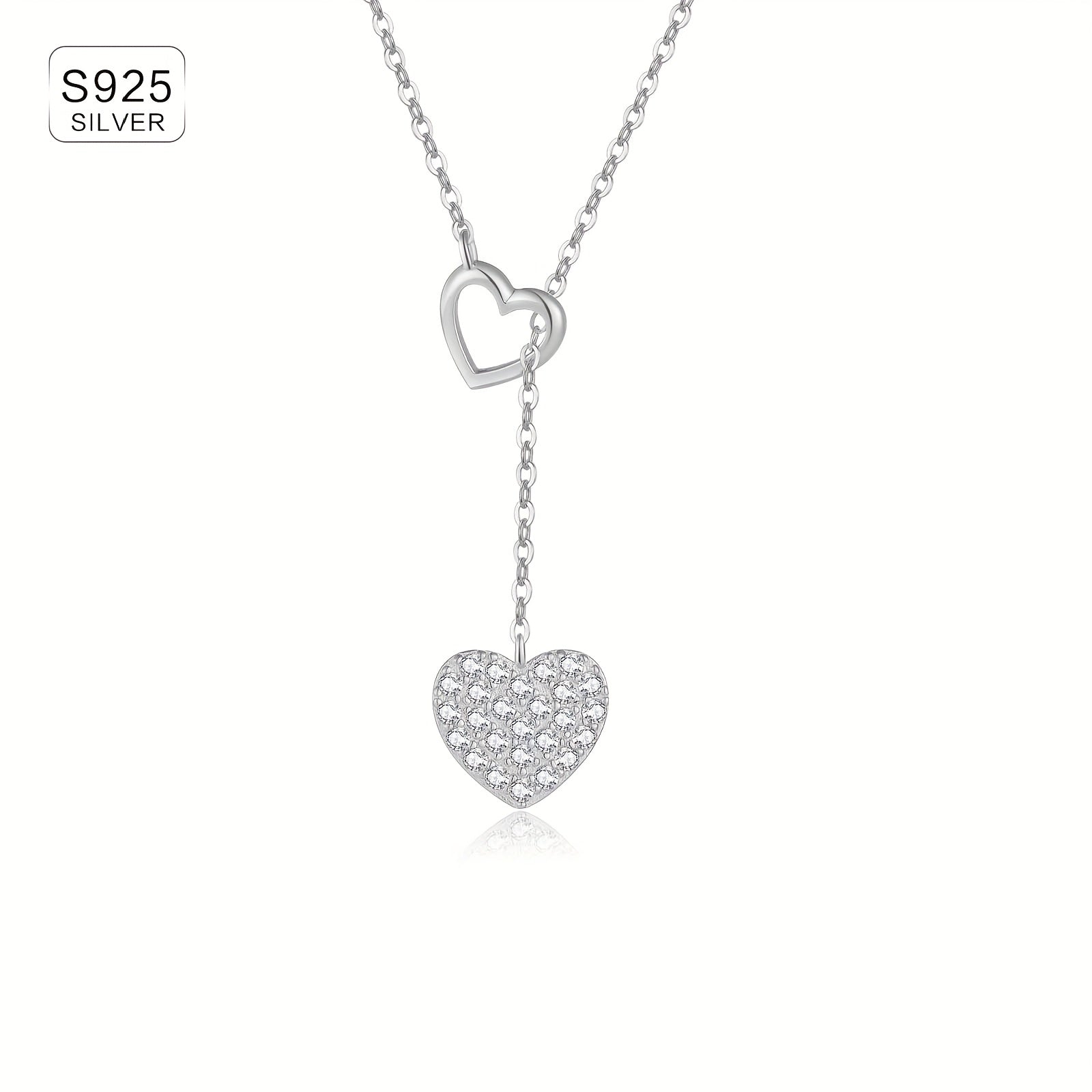 This elegant and romantic necklace features two intertwined hearts in sterling silver adorned with sparkling cubic zirconia stones. Perfect for adding a touch of glamour to any outfit.