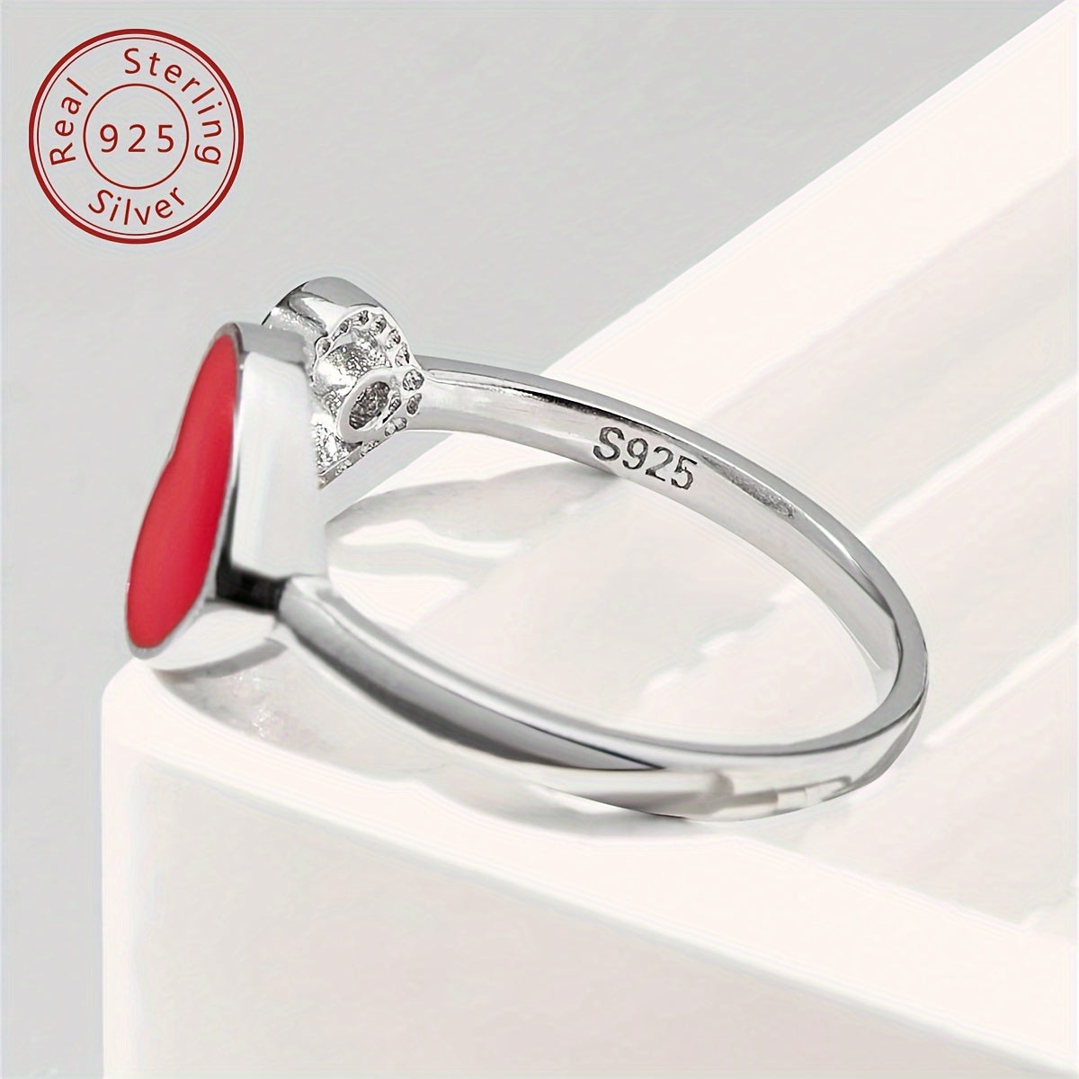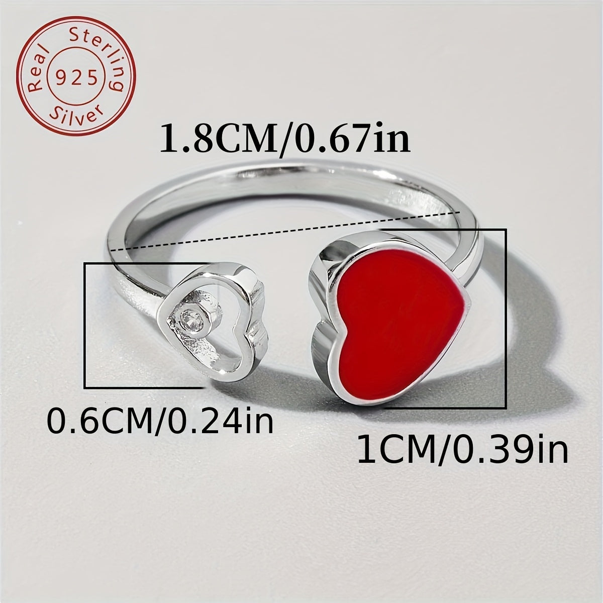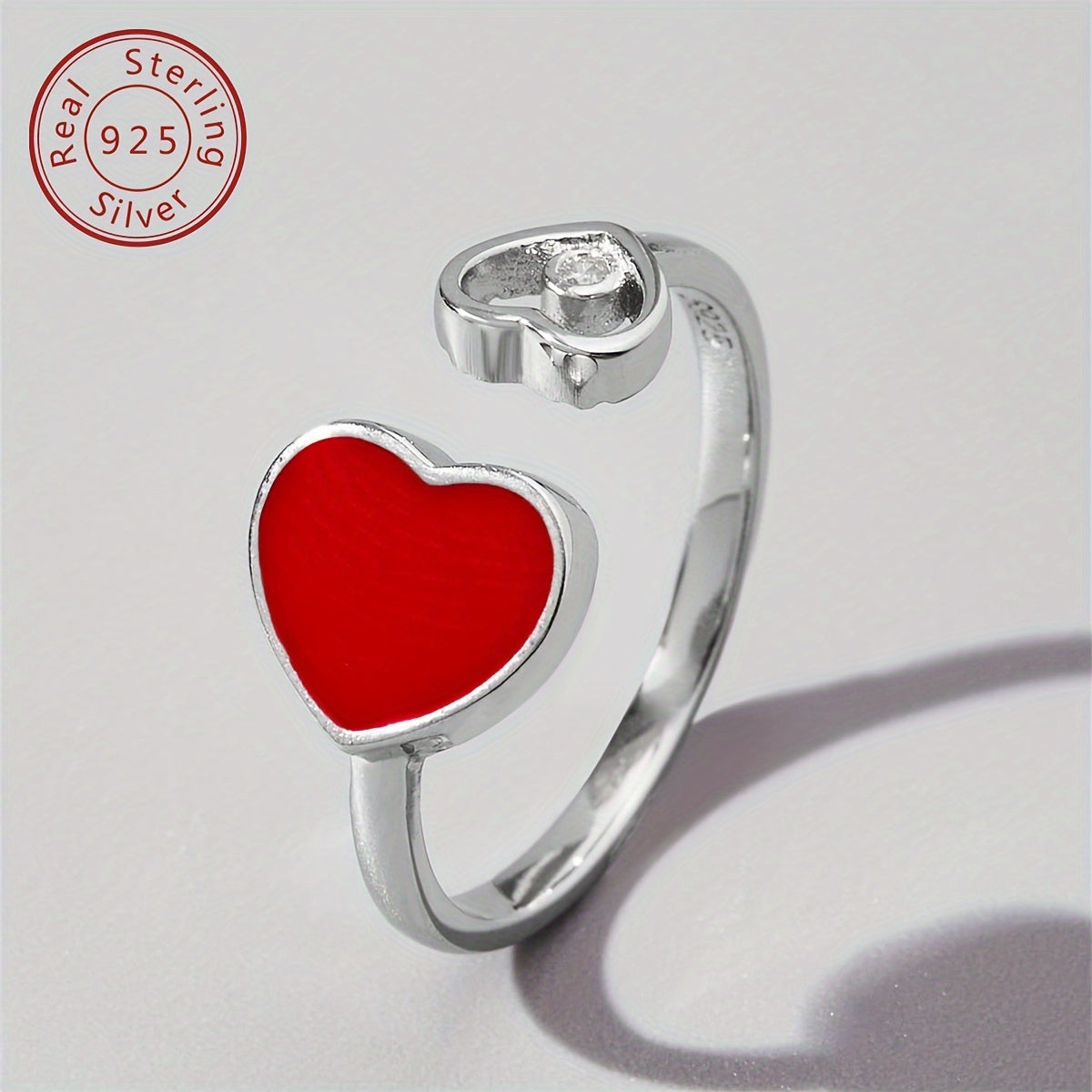 Beautifully crafted 925 silver ring with synthetic zirconia heart design, perfect for couples. Comes with red and white sets, suitable for women.