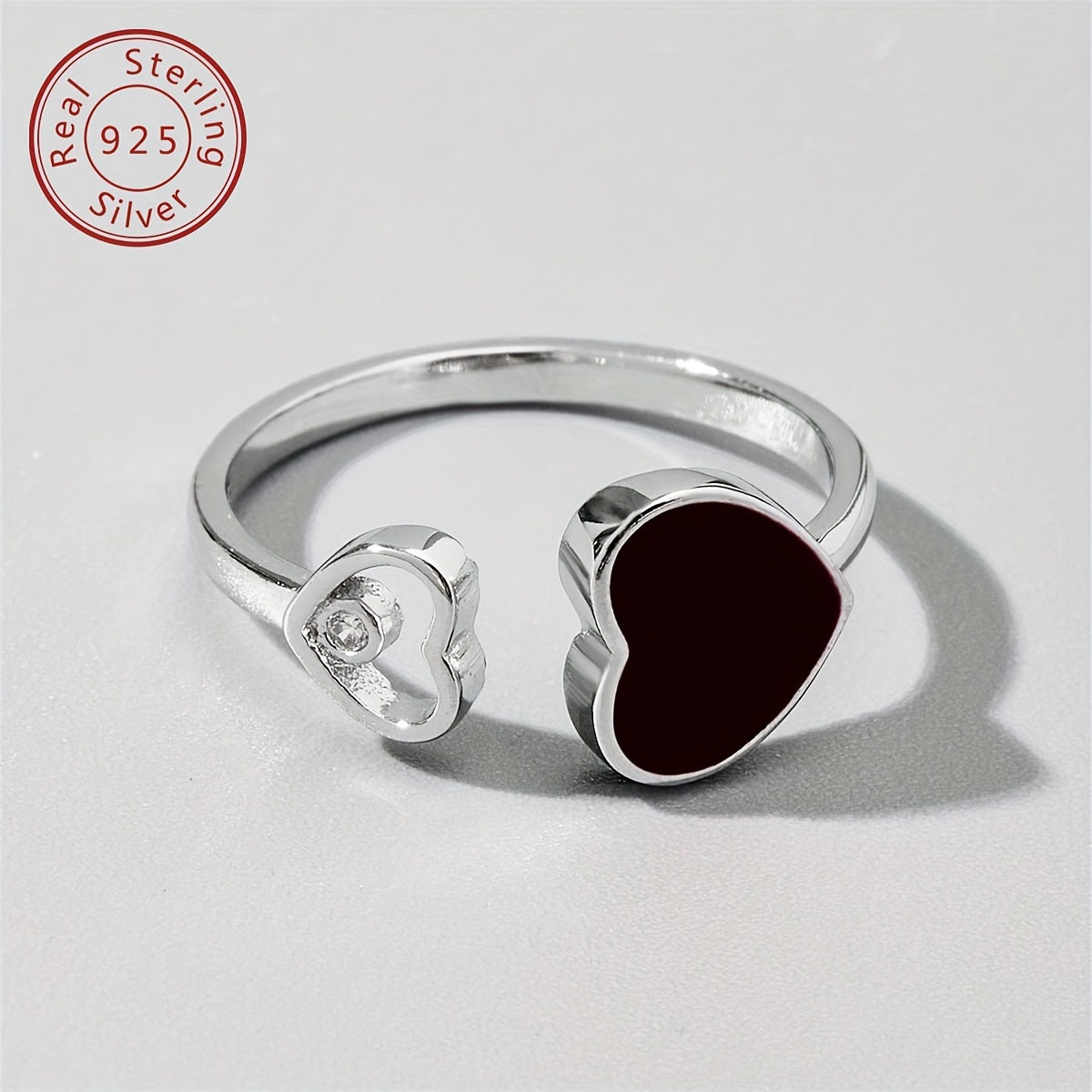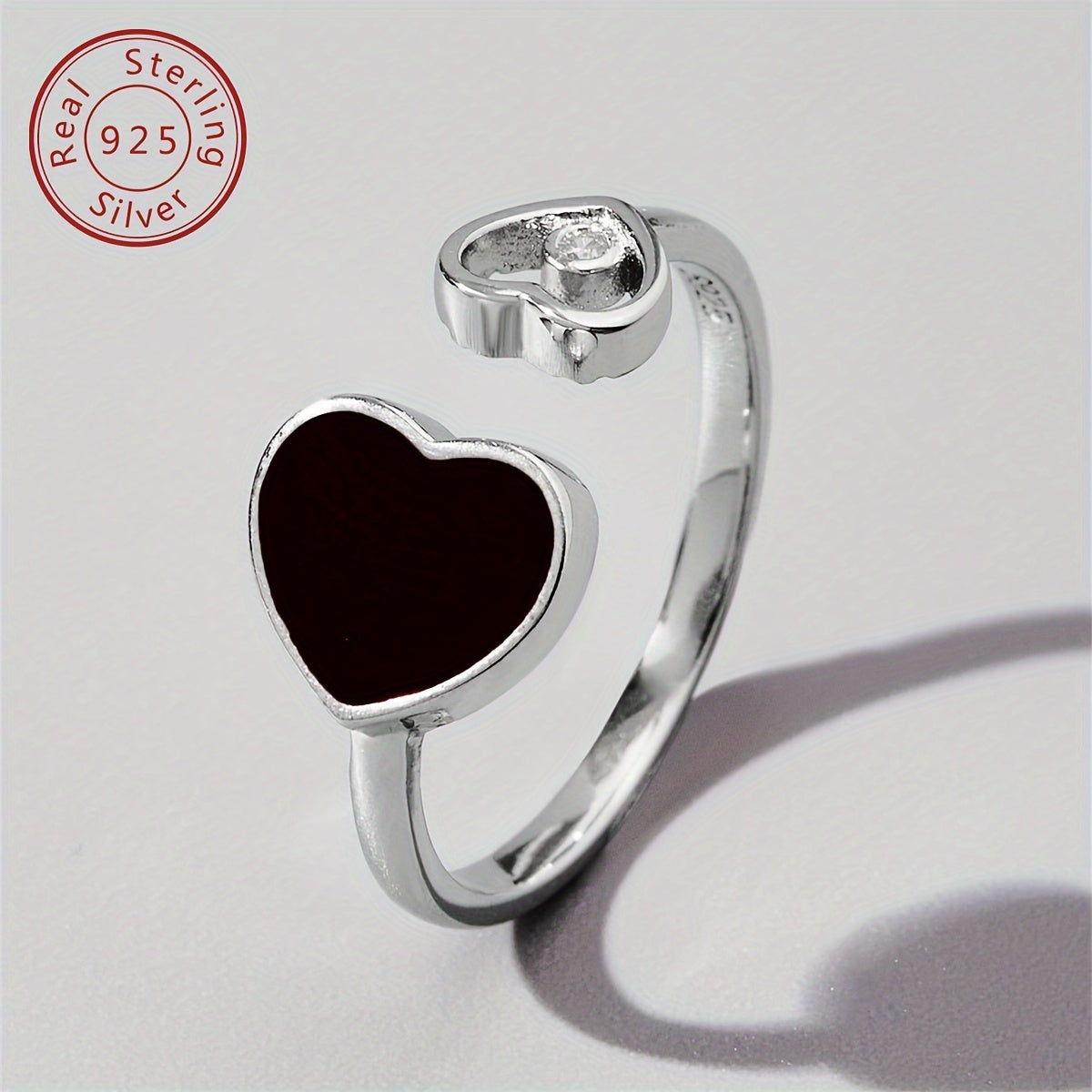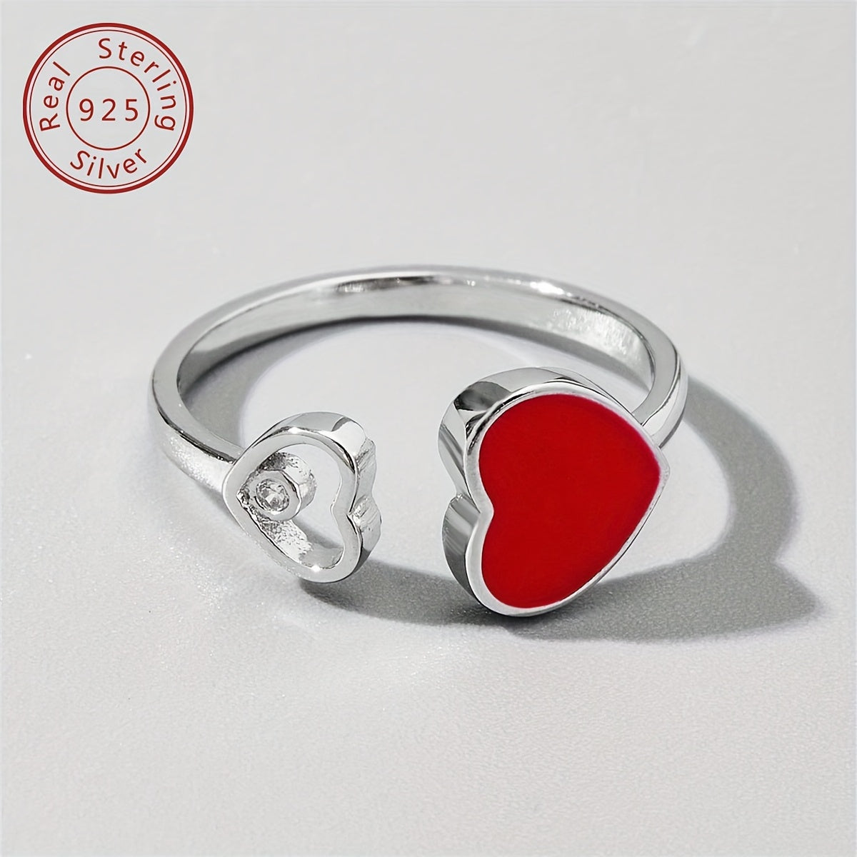 Beautifully crafted 925 silver ring with synthetic zirconia heart design, perfect for couples. Comes with red and white sets, suitable for women.