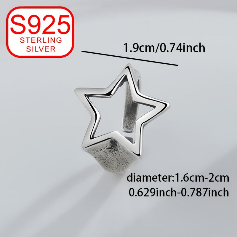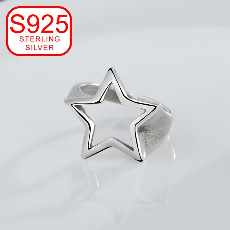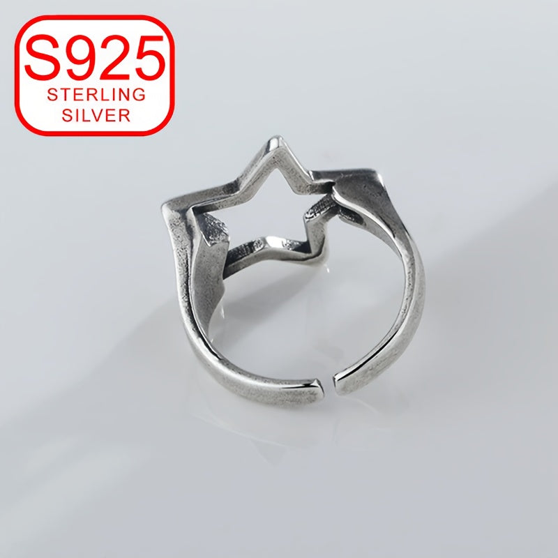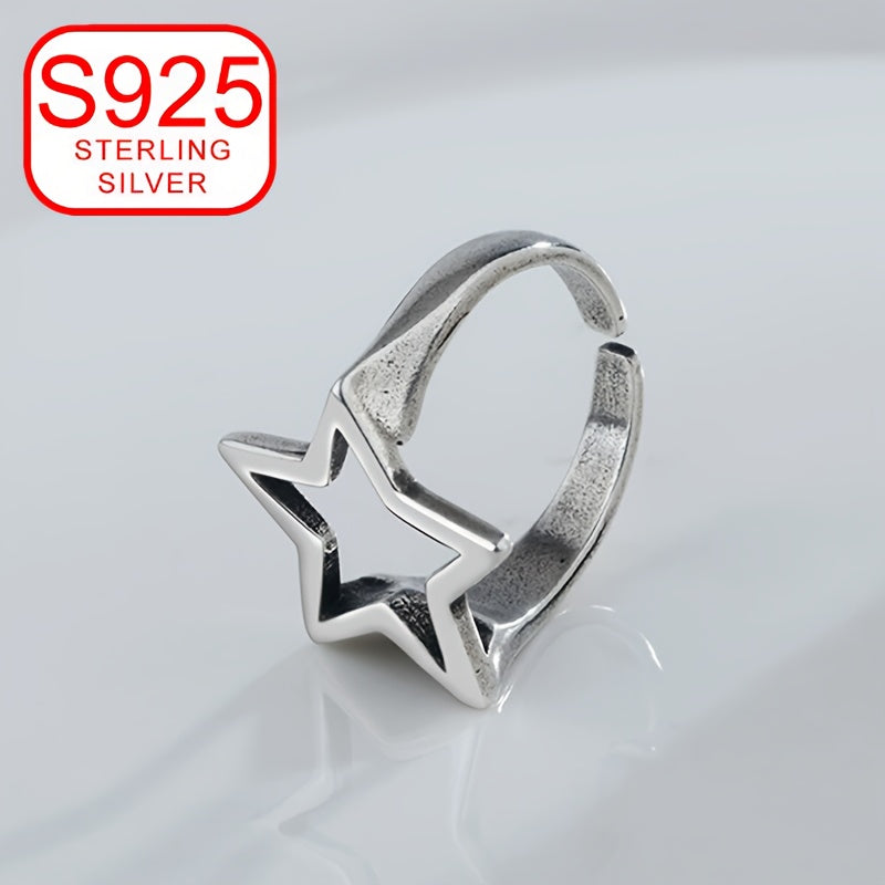 This unique 925 silver ring features a retro design with a hollow five-pointed star. It is hypoallergenic and perfect for women who love old-fashioned, versatile, and high-end fashion.