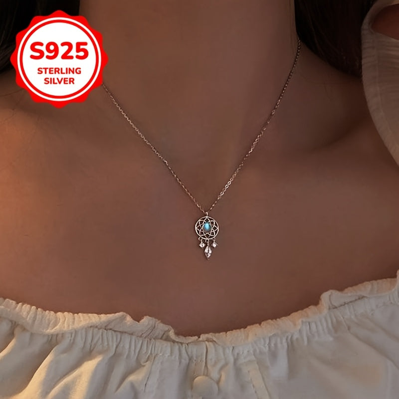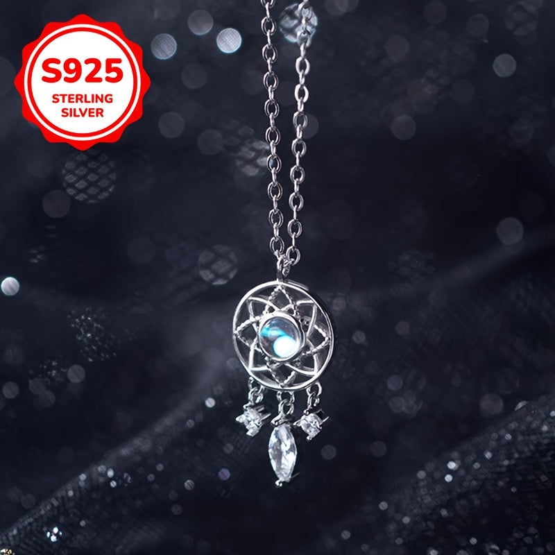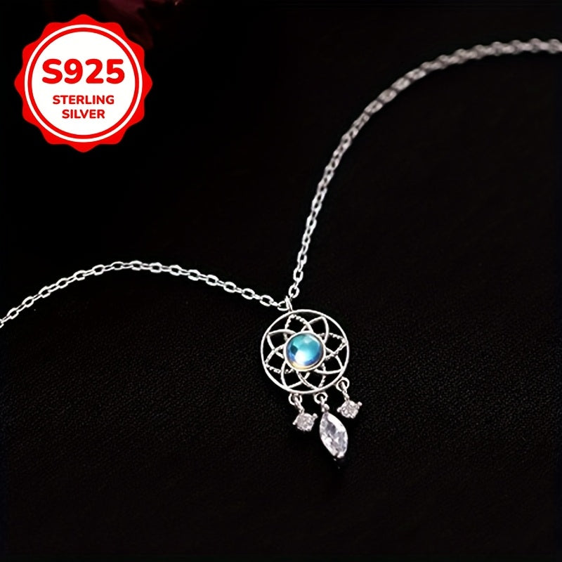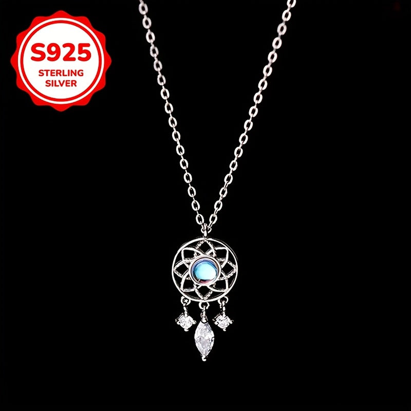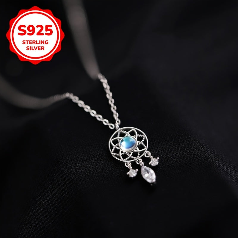 This hypoallergenic necklace features a single strand moonstone patterned hoop pendant. Stylish and light, it is suitable for all 12 months.