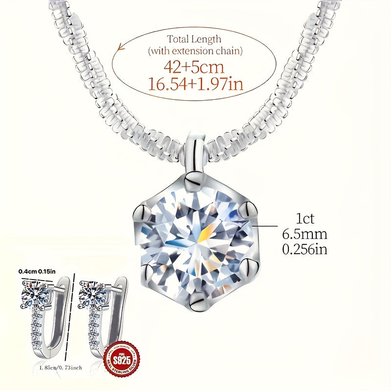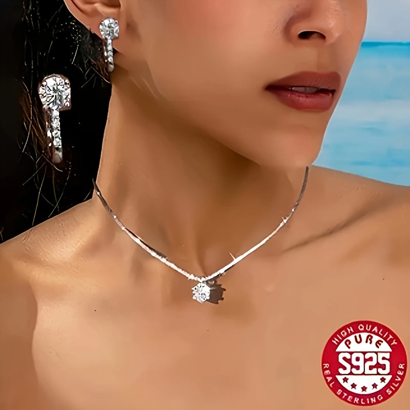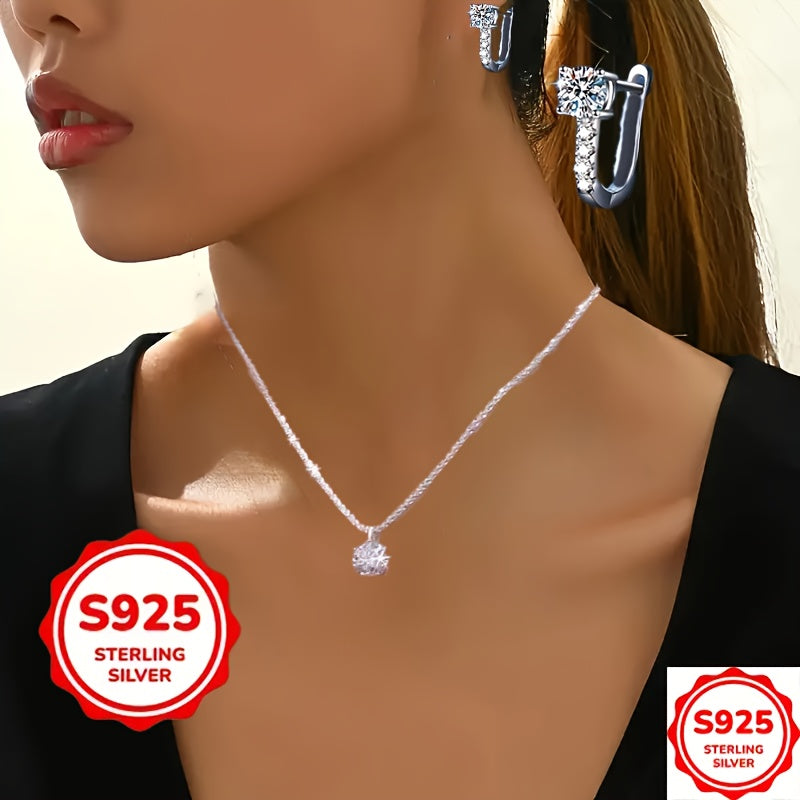 This set includes a stunning 925 sterling silver pendant necklace adorned with synthetic Zirconia paired with a pair of S925 silver U-shaped hollow earrings. Perfect for any occasion!