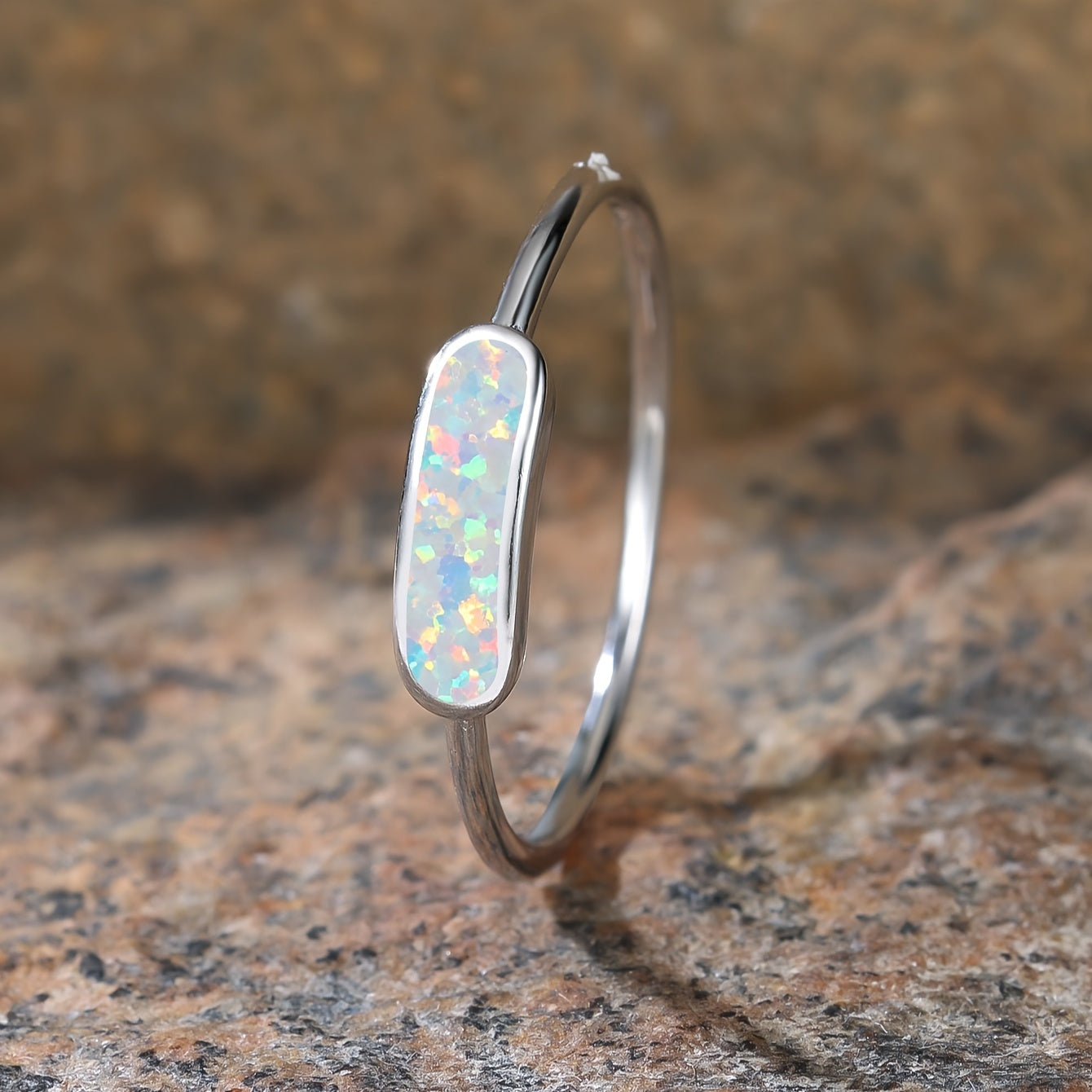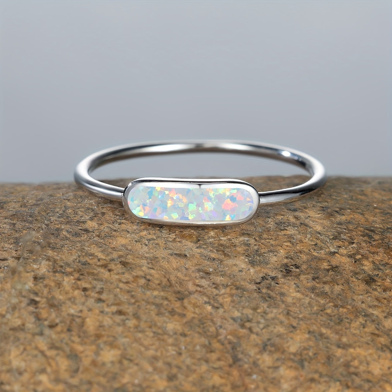 Elevate your style with this fashionable 925 silver ring featuring a rectangular synthetic opal. Perfect for daily wear or weddings, this high-end accessory weighs just 1.4g.