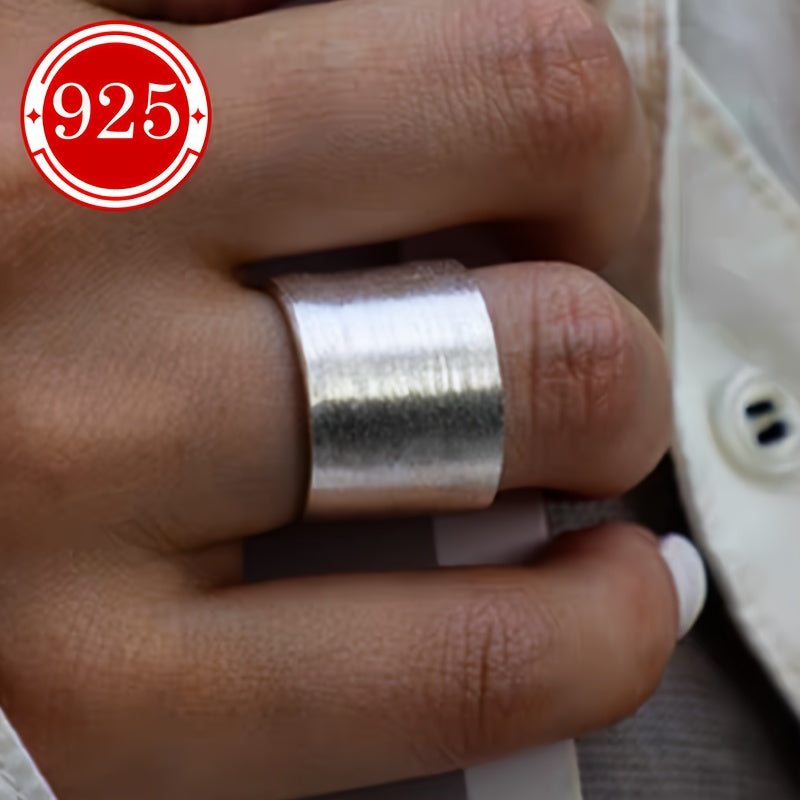 This set includes a women's fashionable wide frosted polished ring and a versatile niche high-end temperament index finger ring, both made from hypoallergenic 925 silver.