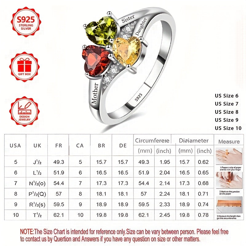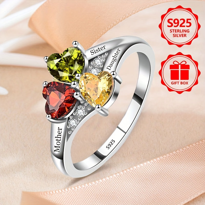 This 925 sterling silver women's ring features 3 colorful synthetic cubic zirconia stones, making it perfect for parties, travel, or gifting to family and friends.