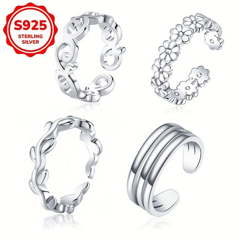 Add elegance to your daily or holiday look with these beautiful 925 sterling silver foot rings featuring leaf, flower, and heart designs.