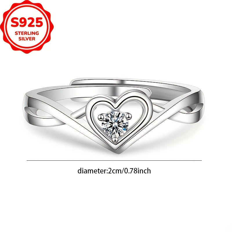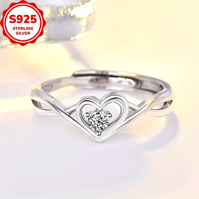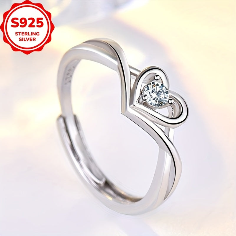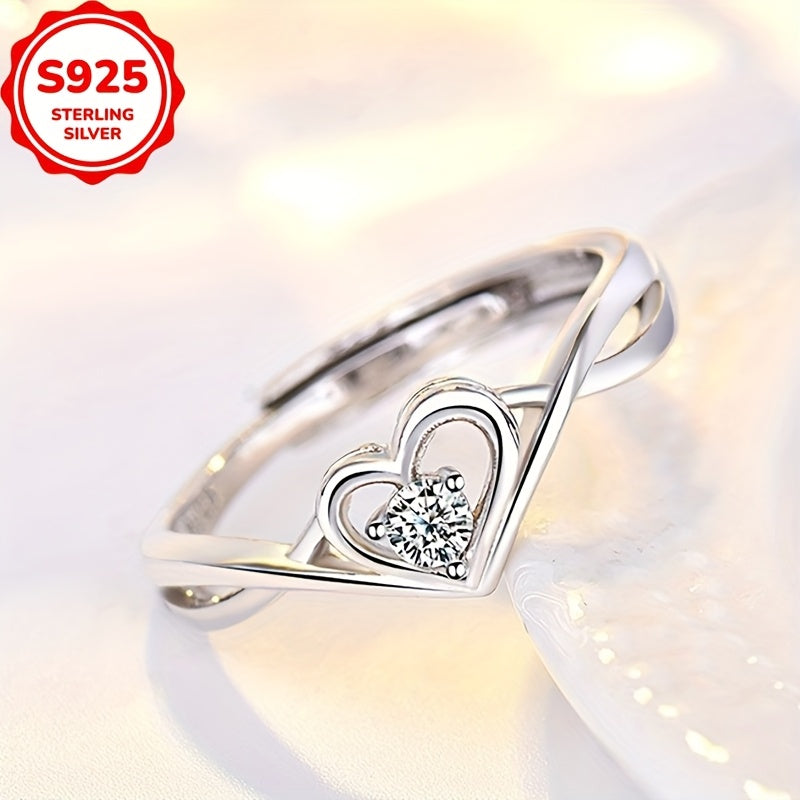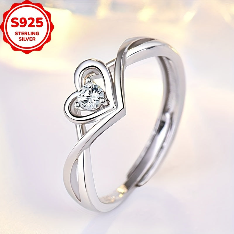 925 Sterling Silver Heart Shaped Ring with Adjustable Closure