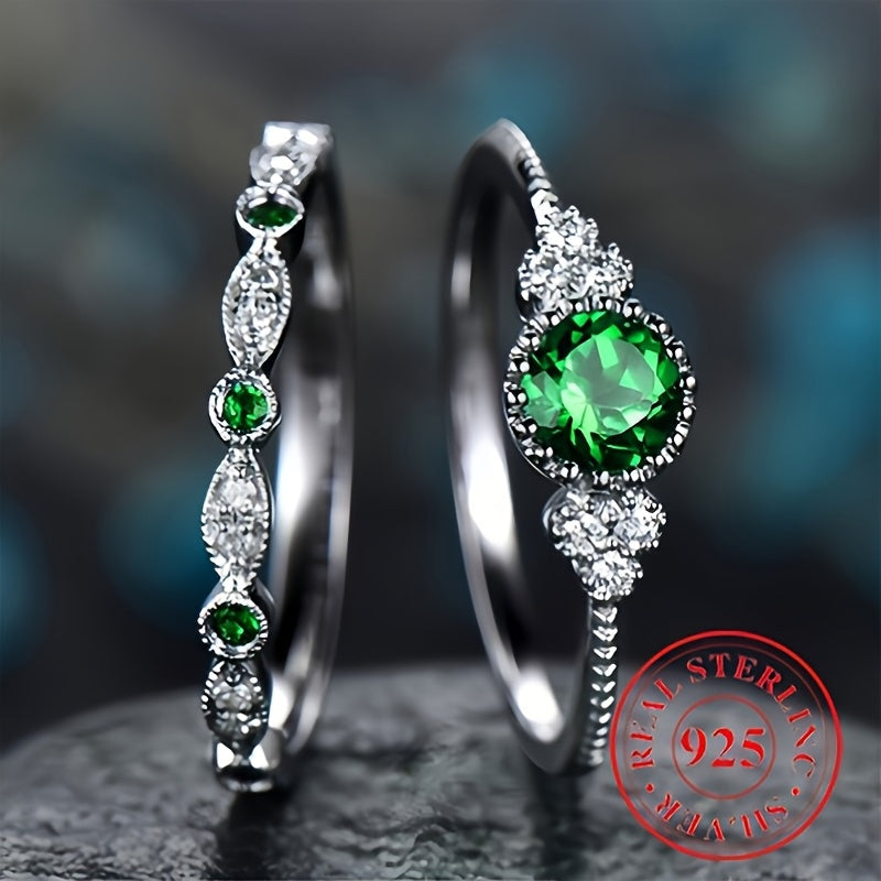 This set includes two stunning rings made of 925 sterling silver with vibrant green synthetic zirconia stones. Perfect for special occasions and engagements.